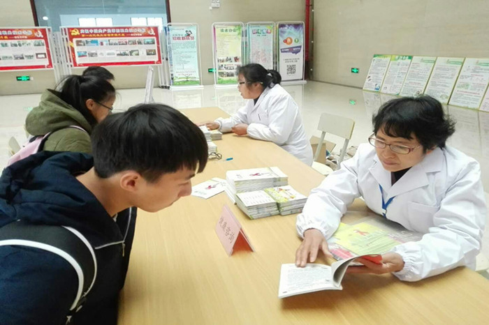 为切实加强我院艾滋病及肺结核等传染病防控工作,保障全院师生身体健康,12月1日,后勤处医务室在图书馆一楼大厅开展了以“共担防艾责任、共享健康权利、共建健康中国”为主题的预防艾滋病、肺结核、肝炎、流感知识宣传图展,并发放预防资料,提供健康咨询。活动全天发放预防资料3100份,接受健康咨询97人次。