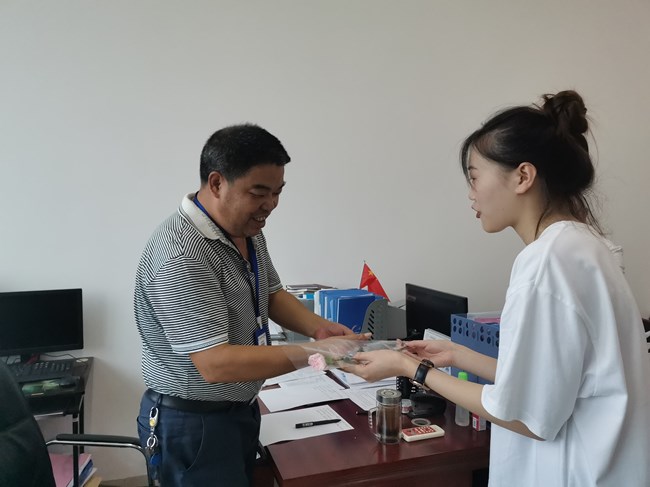 9月10日8点10分,同学们早早在教室的黑板上为老师们写下了教师节祝福语“老师,您辛苦了!教师节快乐!”,教室内整整齐齐坐着的同学们,在安静地等待老师的到来,当老师走进教室的那一刻,同学们集体起立高喊:“老师,您辛苦啦!节日快乐!祝您工作顺利、生活幸福!”在第36个教师节到来之际,学院的同学们以不同的方式向老师们表达感激、敬佩之情,为老师们送上真诚的祝福。学生代表来到了行政办公区为老师们献上代表祝福、感恩的鲜花——康乃馨,向老师们恭敬地鞠躬问候,送上祝福,对于这份意外的小礼物,行政岗位上、后勤岗位上、保卫岗位上的老师们纷纷露出惊喜,这些平时不在教学一线的老师们,当接到同学们双手送上的鲜花,露出了幸福的微笑,他们温暖眼神告诉我们,尽管是一支小小的鲜花,他们也很开心、很满足。