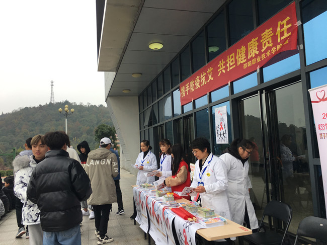 11月25日后勤处开始了活动前准备工作:宣传片、宣传资料、宣传展板、宣传栏、海报(粘贴在每栋学生宿舍走廊专栏)、宣传横幅。11月26日至12月10日每天中午和下午文体馆室外电子屏播放系列防艾宣传片。医务人员在文体馆电子屏走廊和医务室前坪设立了宣传和咨询工作台,展出了系列防艾宣传展板,向同学们讲解艾滋病的临床表现、感染途径、预防策略;指导学生网络知识竞赛答题130人,本次活动共发放防艾手册4500份,接受咨询120人次;各院系部的每个班级组织学生观看了防艾宣传片并开展了防艾主题班会组织学生参与2020年第二届湖南省大学生艾滋病防治知识网络竞赛。目的在于以实际行动动员全体师生员工,共同防控艾滋病和推进“健康中国行动”。(后勤处 石欣跃)
