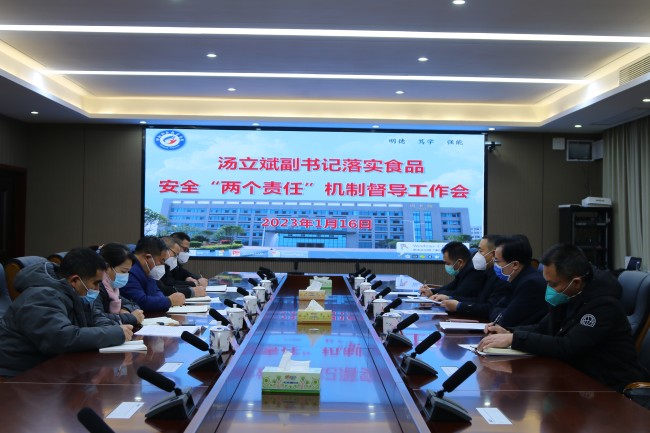 为认真贯彻落实国务院对食品安全工作的有关要求,推动食品安全属地管理责任落地落实,1月16日下午,邵阳市委副书记汤立斌率部门主要负责人来我校督导食品安全“两个责任”机制落实工作,学校党委书记邓政出席会议,相关部门负责人列席会议。