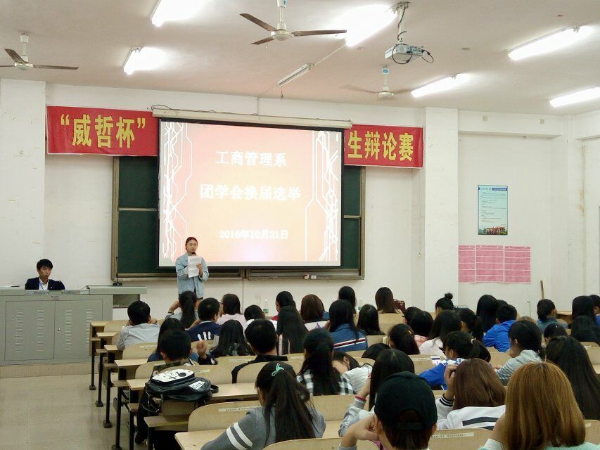10月21日下午,工商管理系团总支学生会换届大会在至博楼2111室如期举行,马祯、尹婷、杨柳芳老师出席大会。