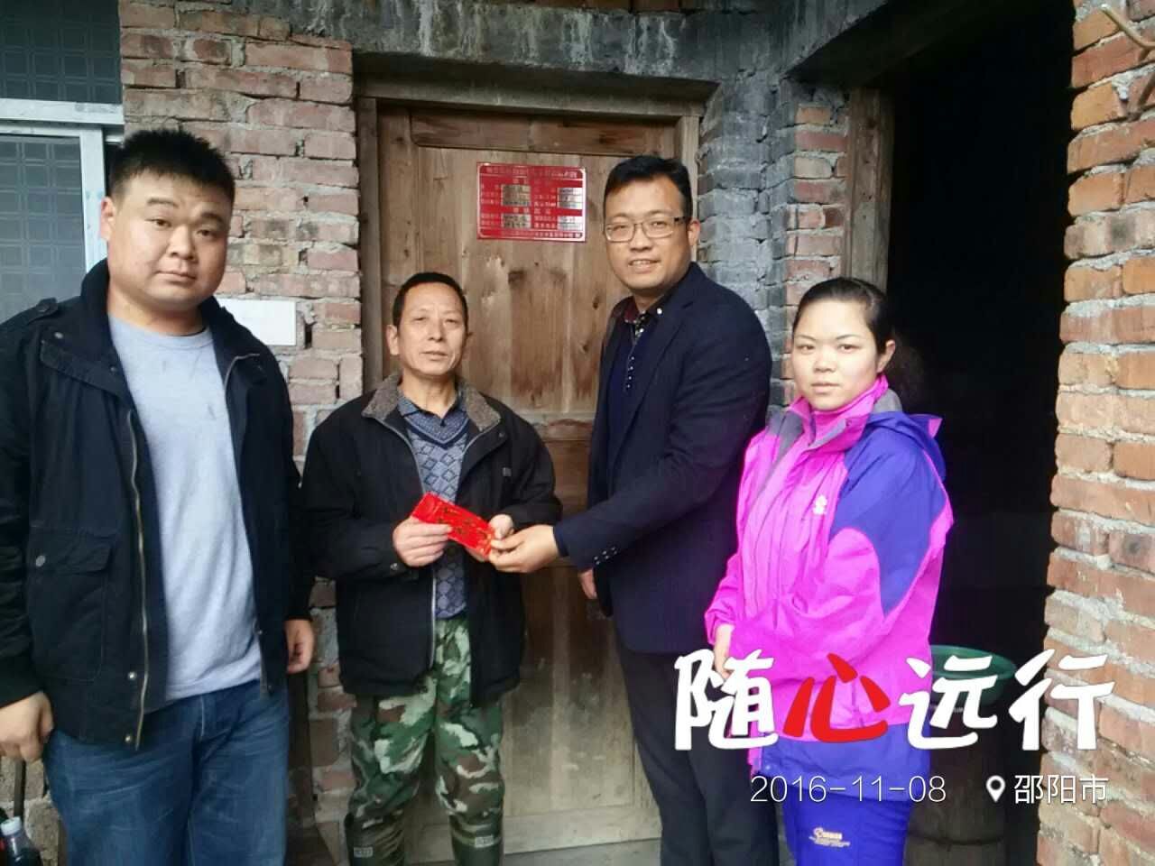 11月8日,工商管理系党总支成员肖艳群、肖炜,许艳平老师、学生干部代表带着生产技术和老师们捐献的冬服来到城步县儒林镇白石园村进行结对扶贫帮困活动。