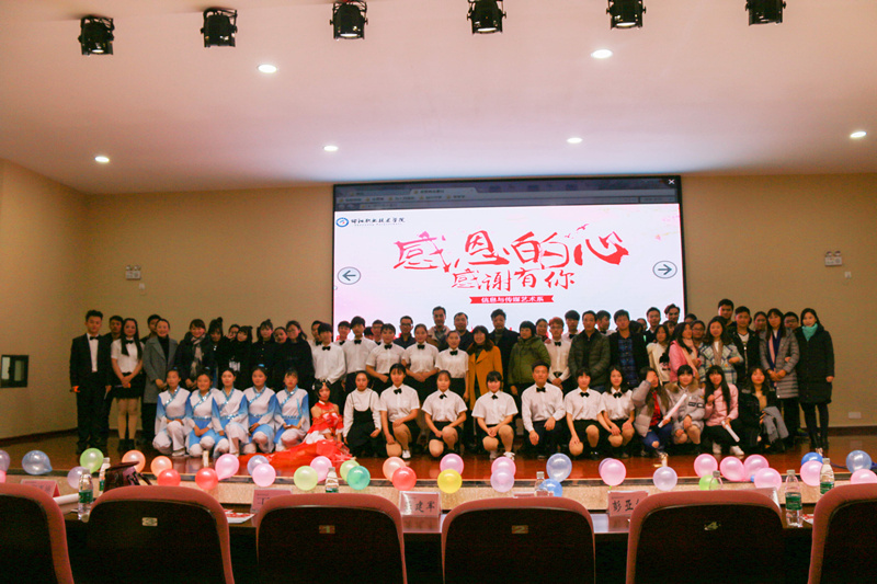 11月24日晚,信息与传媒艺术系在图书馆五楼学术报告厅举办“感恩相伴·梦想同行”感恩晚会,学生工作处处长龚建军、副处长兼团委副书记李鑫,各系党总支书记、副书记、学生管理人员以及信息与传媒艺术系师生共同观看晚会。