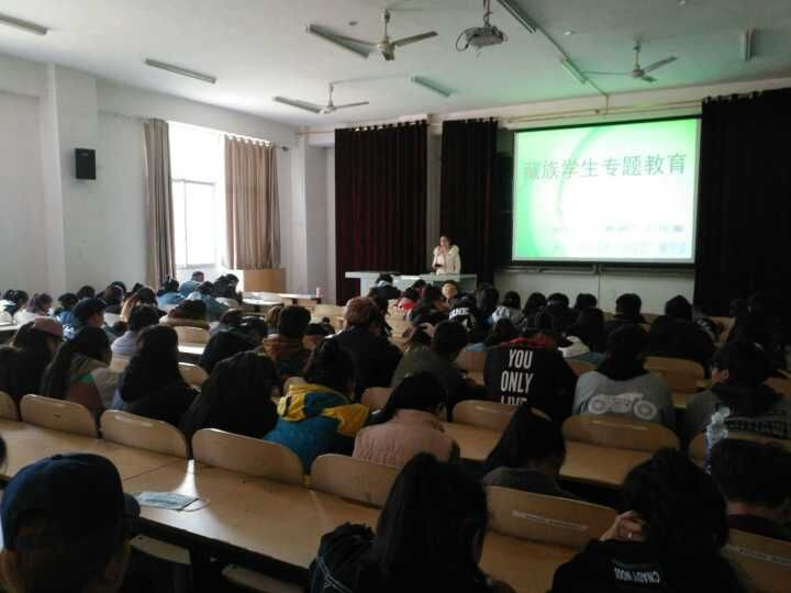 3月8日下午,工商管理系在至博楼2111教室开展藏族学生专题教育活动,藏协会会长索朗旦增主持,系党总支书记肖艳群、辅导员马祯、尹婷以及全系109名西藏学生参加本次专题教育。