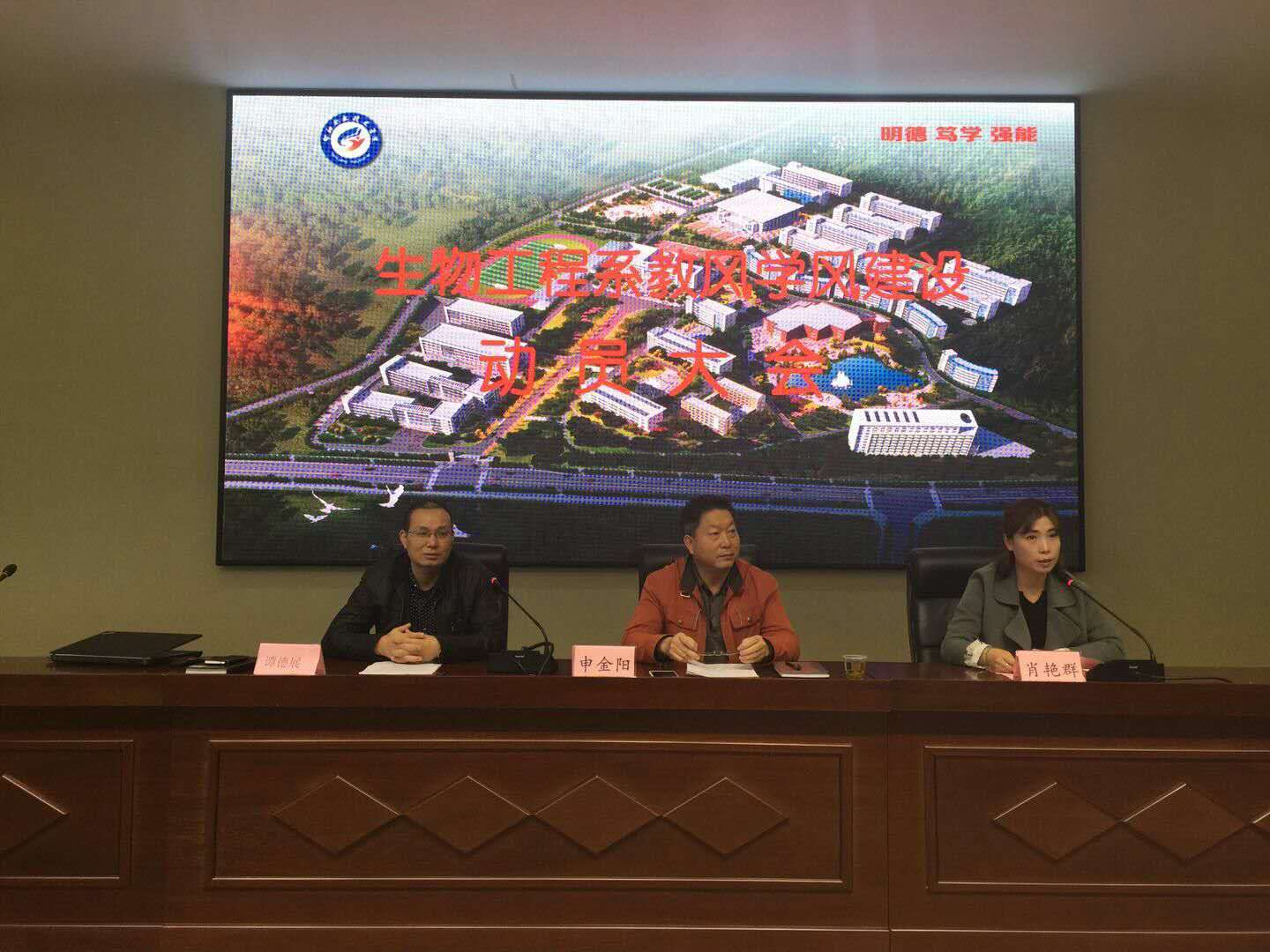 动员大会由系党总支书记肖艳群主持,系主任谭德展作《狠抓教风学风建设,力推我系内涵发展》主题发言,联系领导院纪委书记申金阳出席并讲话。此次大会标志着生物工程系“教师爱教,学生乐学”教风学风建设工作正式启动。(生物工程系)