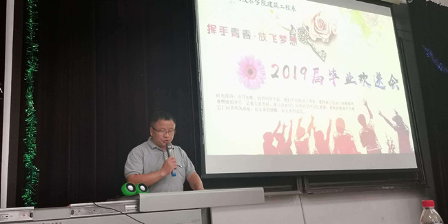 5月28日晚上7:38建筑工程系在2111阶梯教室举行2019届毕业生欢送会,共有毕业生和教职员工200多人参加。