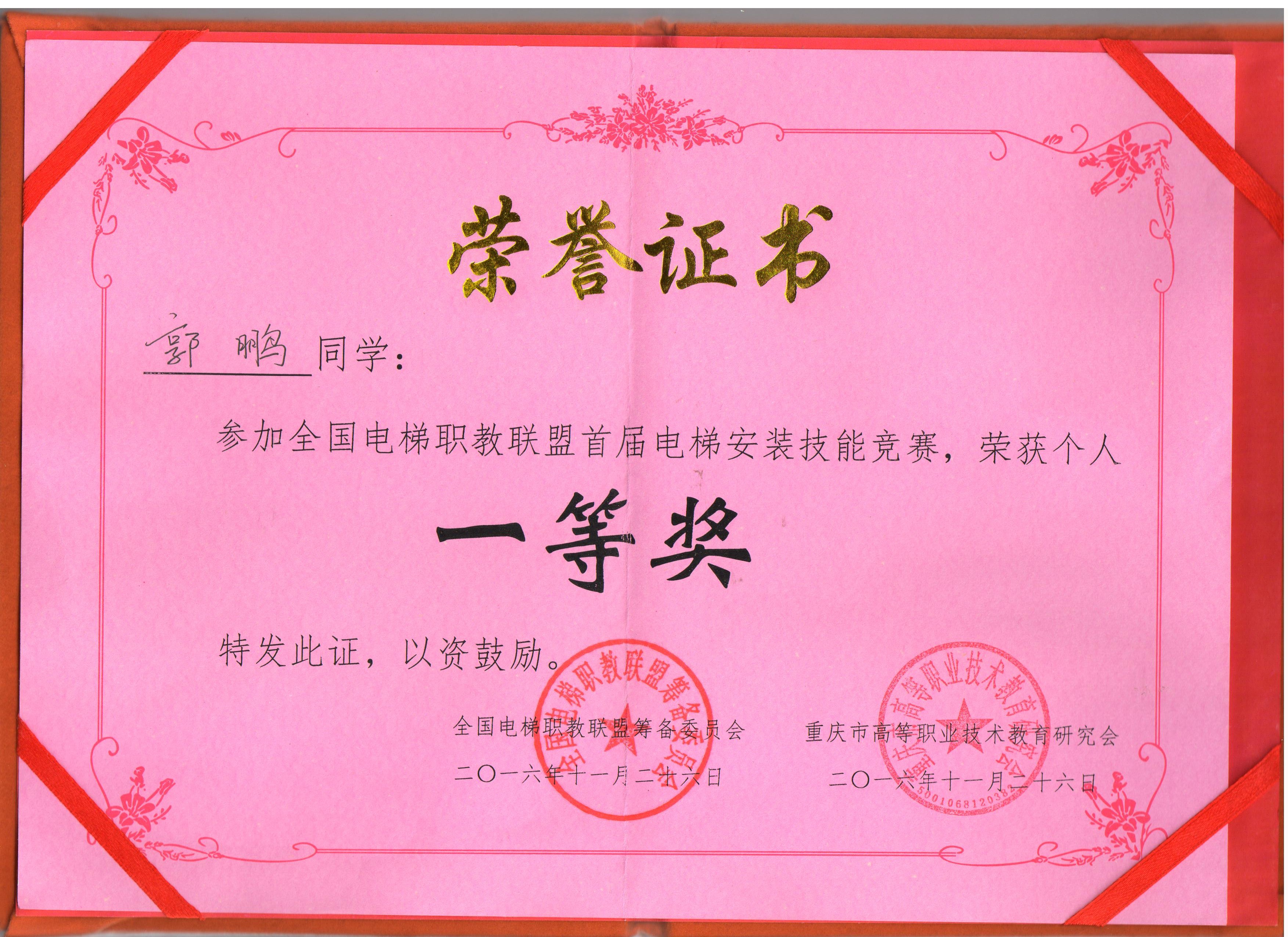 经过激烈角逐,我院代表队获得团体一等奖,郭鹏获得个人赛一等奖第一名,为学院赢得了荣誉。此次技能竞赛,促进了电梯职教联盟成员单位职业教育的发展,进一步弘扬了工匠精神,提高了我院电梯工程技术专业在行业内的知名度。(机电工程系)
