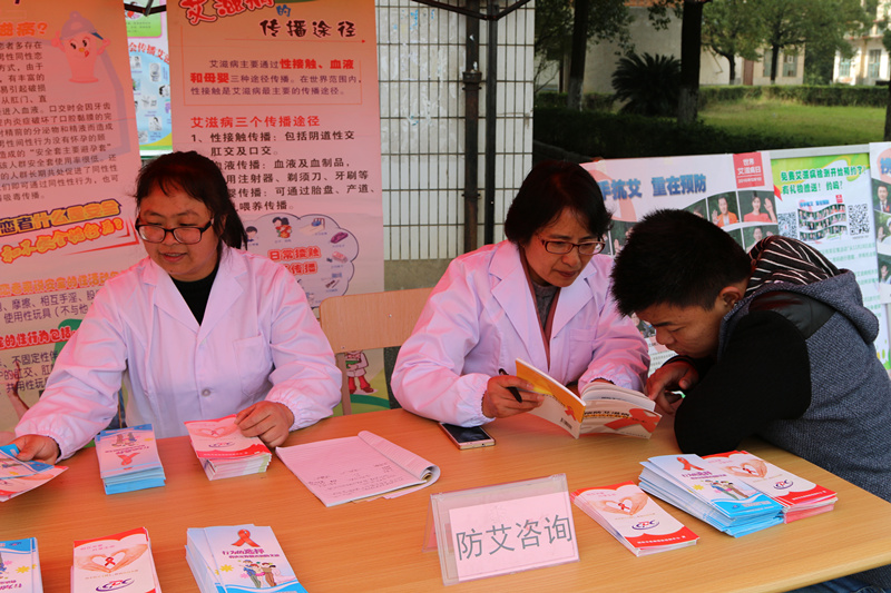 活动现场,宣传展架和墙上宣传栏内张贴着艾滋病防治宣传画报,志愿者向同学们发放艾滋病预防宣传手册,校医石欣跃、罗丹耐心地向同学们解释艾滋病的危害、传播主要途径、预防措施等知识。四个多小时的宣传活动,现场共发放宣传资料三千份,接受咨询百余人次。