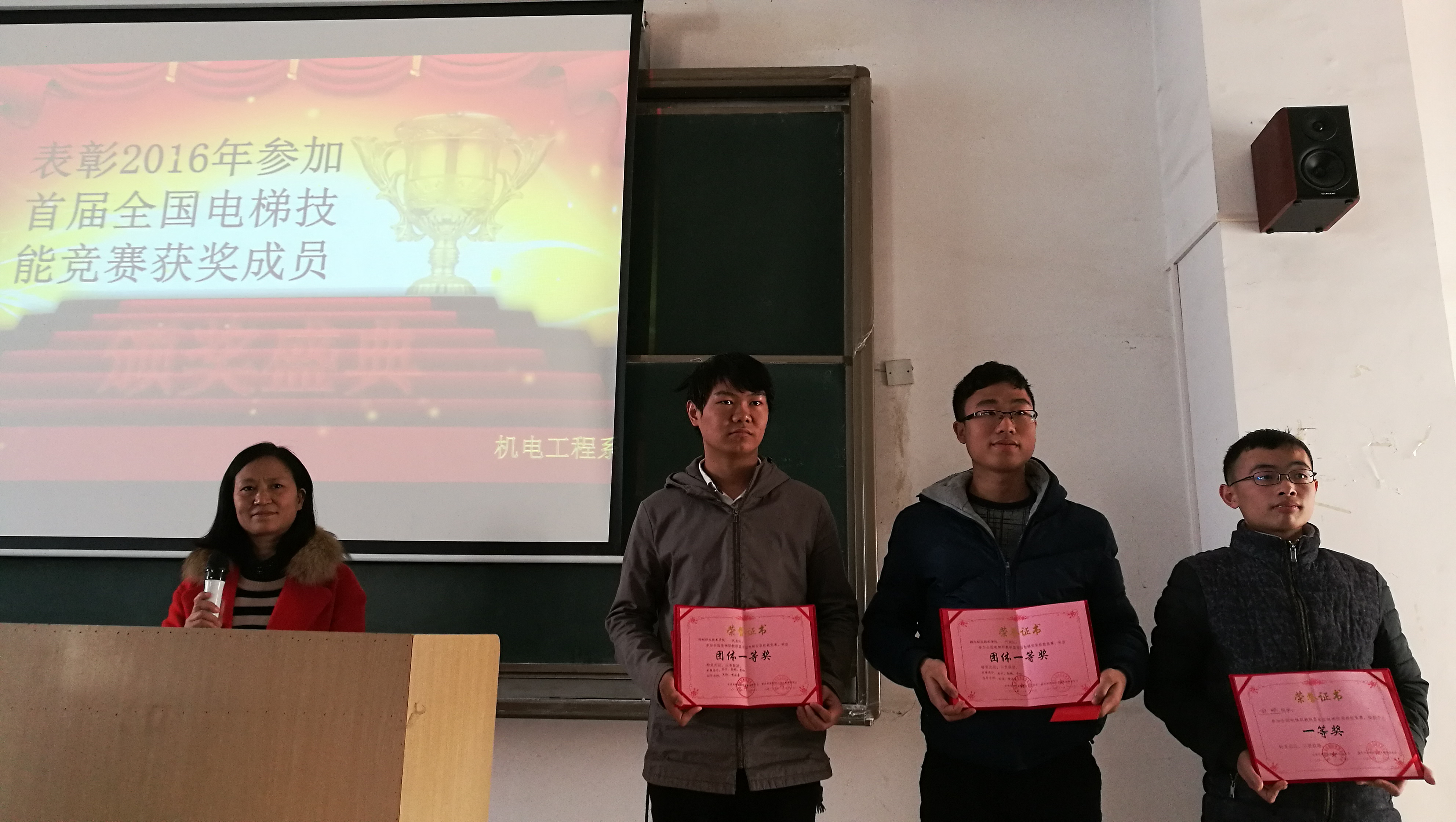 12月8日下午,机电工程系召开2016年全国电梯职教联盟首届电梯安装技能竞赛获奖人员表彰大会,电梯工程技术、机电一体化技术专业在校学生及政治辅导员参加会议。会议由党总支副书记陈勇主持。