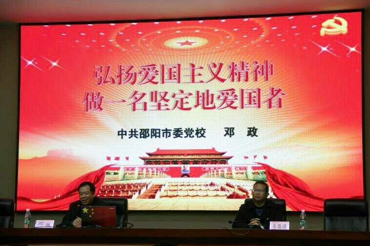 邓政教授的讲座主题为“弘扬爱国主义精神,做一名坚定的爱国者”。他首先介绍了长征的历史、一二九运动,联系长征历史就学校要培养什么人、怎样培养人以及人如何体现自身价值等问题阐述了自己的观点。紧接着从什么是爱国主义、为什么要爱国、爱国爱什么、怎么爱国四个方面阐释了爱国主义精神。邓教授从历史的角度、理论的高度、现实的维度为我院师生上了生动的一课。