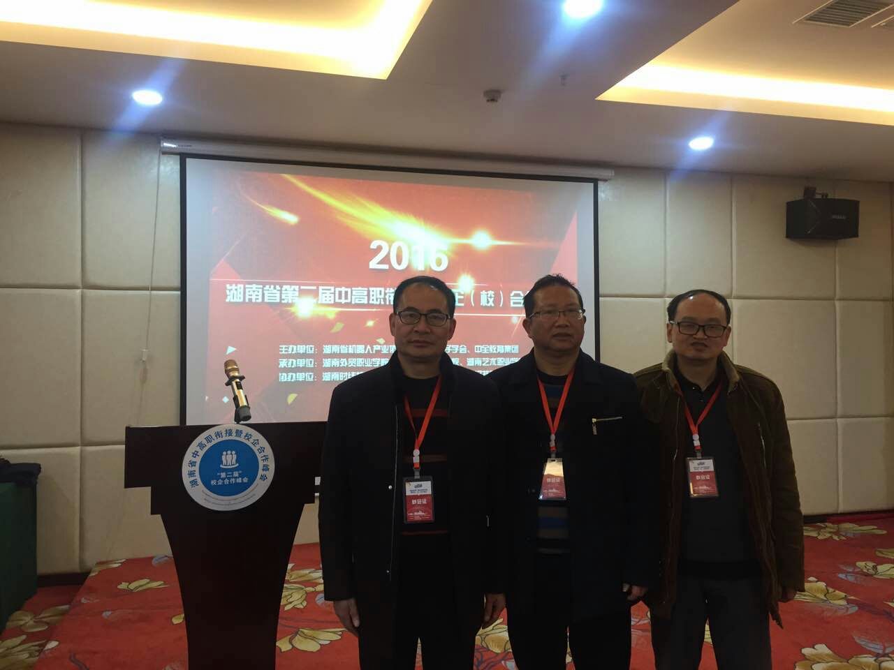 由湖南省机器人产业协会、湖南省电子学会举办的2016湖南省第二届中高职衔接暨校企(校)合作峰会于元月6日至7日在湖南外贸职业学院举行。我院副院长马昌保、招生就业处处长何伟、机电工程系主任刘一兵参加峰会。
