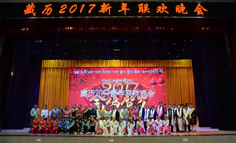 3月1日晚,我院在文体馆隆重举行2017藏历新年联欢晚会。院长段雪梅、学生工作处处长龚建军、生物工程系党总支书记郑爱萍、工商管理系党总支书记肖艳群、信息与传媒艺术系党总支书记刘伟、学生工作处副处长万移风、团委副书记李鑫、各系辅导员和近500余名藏族学生在此欢度新年。