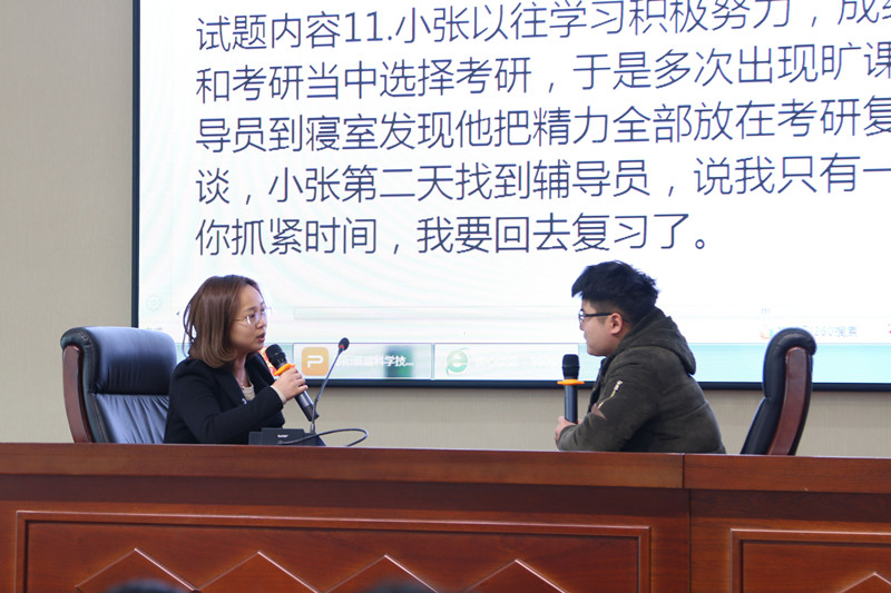 比赛分为两个阶段,第一阶段是基础知识测试和班情熟知。基础知识测试采用笔试方式进行,主要考察辅导员对职业能力守则、 思想道德建设、心理健康教育和危机处理等工作技巧的掌握程度。班情熟知则主要通过考察参赛选手对学生信息的掌握情况。第二阶段是主题演讲、案例分析和谈心谈话。主题演讲考察辅导员的语言表达能力、应变能力和文字内容的逻辑性。案例分析考察辅导员处理应急事件的方式方法和能力。谈心谈话考察辅导员对相关知识的运用能力以及沟通技巧。经过激烈比拼,工商管理系马祯获一等奖,财会金融系杨蕾、五年制大专部肖培培获二等奖,五年制大专部杨梦颖、何洋洋、工商管理系尹婷获三等奖。(学生工作处 万移风)