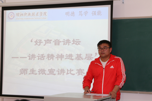 据悉,此次比赛虽已告一段落,但巡回宣讲活动将一直持续到10月上旬,学院将从此次比赛中吸纳优秀师生群体,组成师生微宣讲队伍,并结合学院的实际情况,组织微宣讲小分队成员进行备课,深入系部、班级、宿舍开展主题宣讲活动。(基础课部)