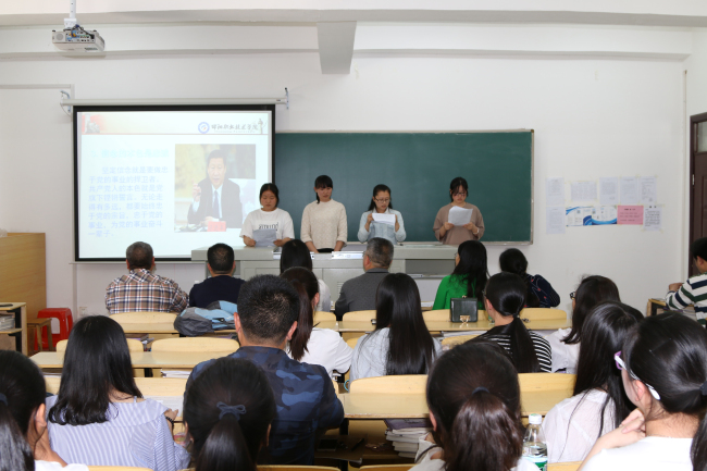 赛前,在老师的精心指导下,各宣讲小组认真查阅资料,撰写宣讲稿,制作PPT。共有35组学生提交了宣讲稿件参加初赛,遴选出了11组参加决赛。决赛现场,来自各系的11组选手从各个方面对习近平总书记系列重要讲话精神、全面从严治党、省十一次党代会等内容进行了宣讲,充分展示了自己的表达能力和理论水平,选手们的精彩宣讲赢得了在场师生的阵阵掌声。经过两个多小时的激烈角逐,最终产生了一等奖一组、二等奖两组、三等奖三组。工商管理系电商1161班张丹丹一组《如何做党和人民满意的好干部——习近平总书记关于好干部重要讲话解读》获得比赛一等奖。