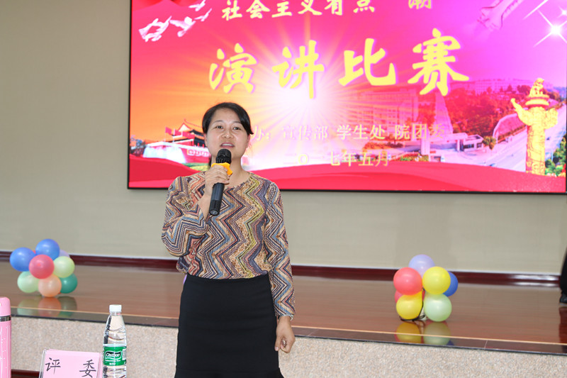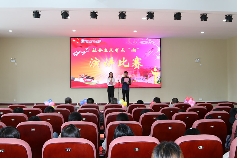 根据省委教育工委《关于在高校开展“社会主义‘有点潮’”系列主题活动的通知》要求,5月16日下午,我院在图书馆五楼报告厅举办“社会主义‘有点潮’”主题演讲比赛。纪委书记申金阳、学生工作处处长龚建军、财务处处长肖海丽、财会金融系党总支副书记彭亚红,思政课教师张健、曾广喜担任评委,近400名师生观看比赛。