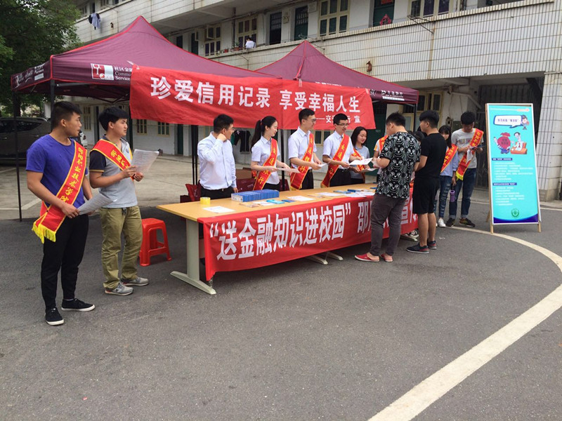 近一个时期以来,校园网贷风险事件频发,校园金融诈骗乱象叠出,引起社会广泛关注,也暴露出部分在校学生金融知识缺乏,金融风险防范意识淡薄等问题。为进一步教育引导在校学生增强金融风险防范意识和金融安全意识,提升自我保护能力,根据《中国银监会 共青团中央 教育部关于开展送金融知识进校园活动的通知》《湖南银监局 共青团湖南省委 湖南省教育厅关于开展“送金融知识进校园”活动的通知》要求,我院联系交通银行邵阳分行于6月7日上午在学院内举办“送金融知识进校园”系列活动。