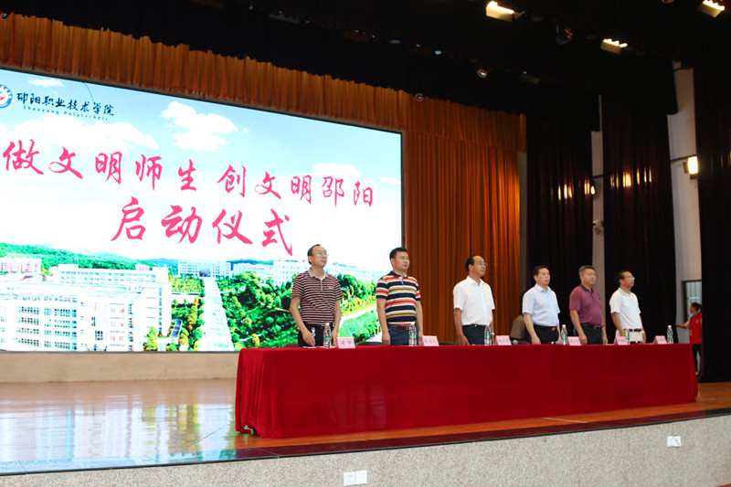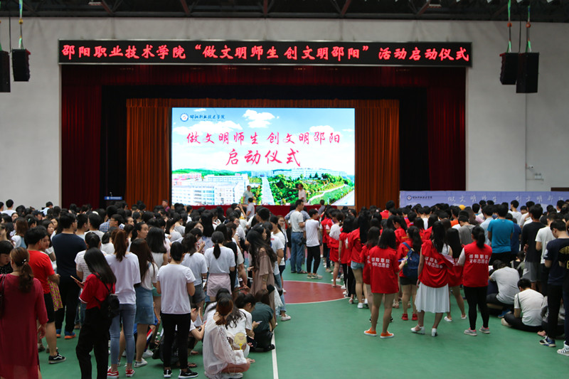 6月22日上午,为响应邵阳市委、市政府创建全国文明城市的号召,我院在文体馆隆重举行“做文明师生 创文明邵阳”启动仪式。市人大常委会副主任赵为济,院党委书记李小平、副书记张远红、纪委书记申金阳,副院长周平、马昌保,新闻媒体记者以及师生代表2000人参加启动仪式,马昌保主持启动仪式。