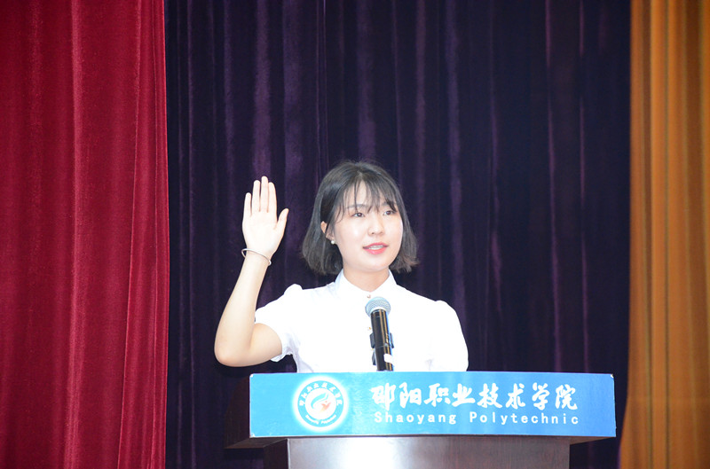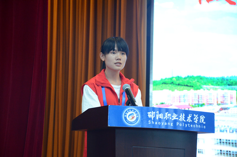仪式上,黄永芯作为学生代表宣读倡议书,刘洁作为教职工代表宣读承诺书。