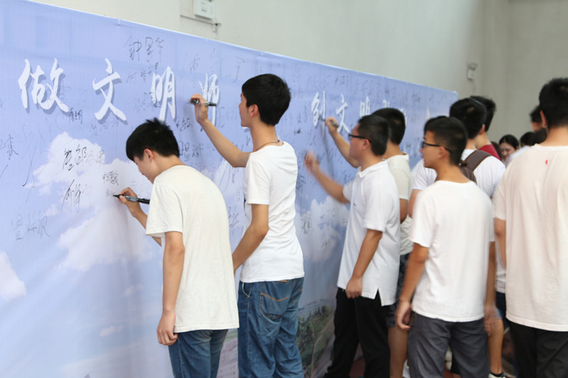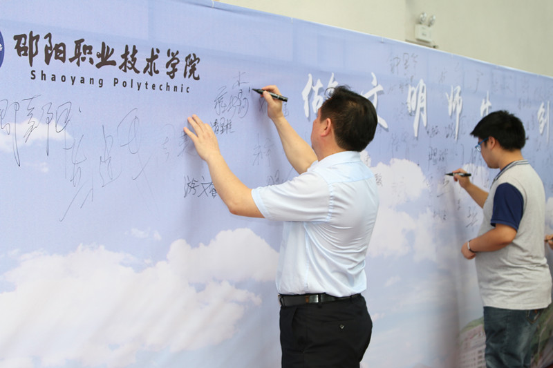 最后,参加启动仪式的领导、老师、学生在“做文明师生 创文明邵阳”签名墙上郑重地签下了自已的名字。(宣传部)