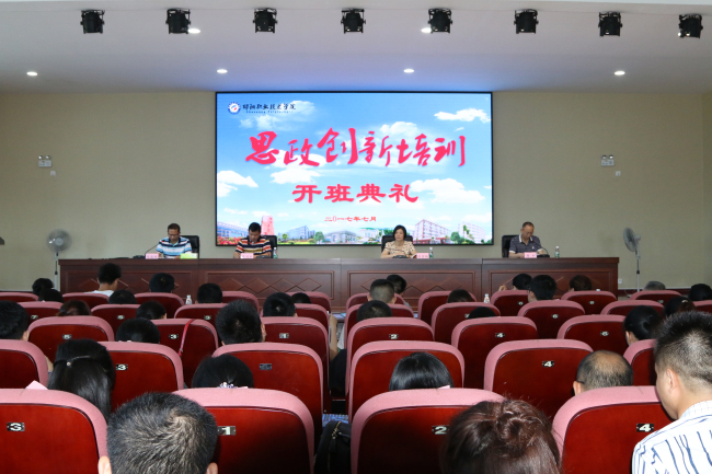 7月17日,我院2017年思政创新培训开班典礼在图书馆五楼报告厅隆重举行。院长段雪梅、党委副书记张远红,副院长周平、马昌保及各系部总支书记出席开班典礼。张远红主持典礼。
