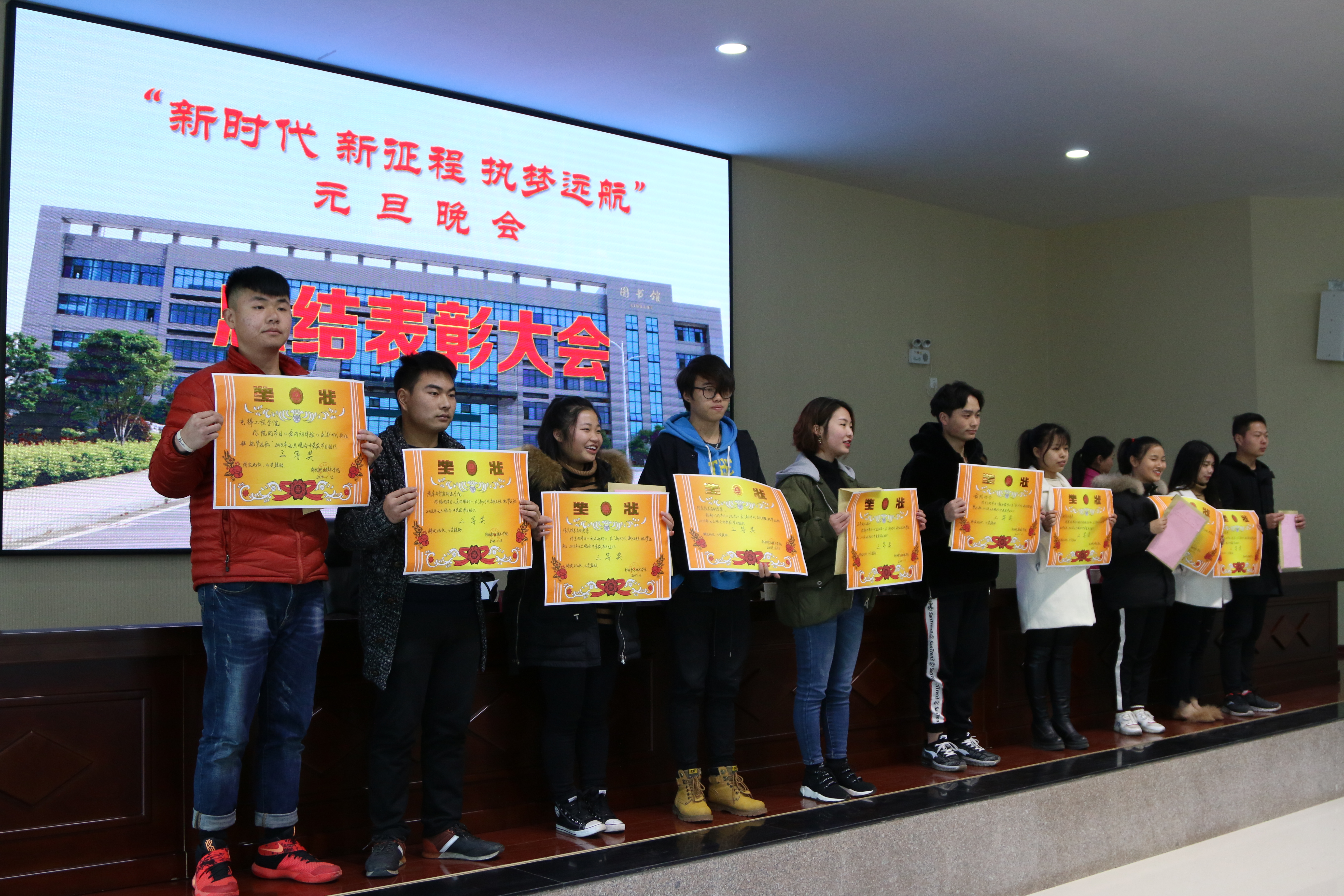 1月12日下午,“新时代 新征程 执梦远航”2018年元旦晚会总结表彰大会在图书馆5楼多功能报告厅隆重举行。大会由党委副书记张远红主持,副院长周平做总结发言并宣读表彰文件。学生处处长朱文华、团委书记肖海丽、工会主席黎林、各系院部党总支书记、团总支书记及晚会所有表演者参加了此次大会。