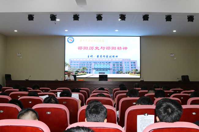5月18日下午,我院第三届校园读书月活动开幕式在图书馆五楼报告厅隆重举行。开幕式特邀中国诗协、联协、赋协会员刘宝田先生做题为“邵阳历史与邵阳精神”的专题讲座。讲座由副院长刘一兵,学生工作处、图书馆等宣传部负责人及师生代表共300余人参加开幕式并聆听讲座。