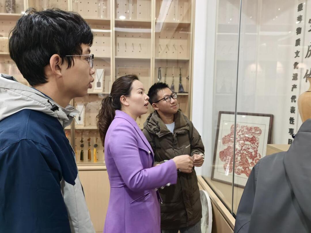 工坊内,花瑶挑花的斑斓纹样、宝庆竹刻的细腻刀工前,师生围站交流:花瑶挑花里的“盘王印”图腾与汉族“牡丹纹”相映成趣,挑花针法吸纳了苗、侗族技艺精华——这些藏在非遗里的“多元一体”密码,让“各民族交往交流交融”的理念从课本走向具象。“宝庆竹刻匠人一刀一刻的专注,和我们调试智能设备的精准要求是相通的!”智控1251班学生王同学在体验竹刻后说,“今后专业课上,我要把这种‘精益求精’的工匠精神落到每一次电路调试里。”智控1252班李同学则从花瑶挑花的多线交织中读懂了“共同体”:“不同丝线织就纹样,就像专业学习里的团队协作,大家拧成一股劲才能攻克技术难题。”