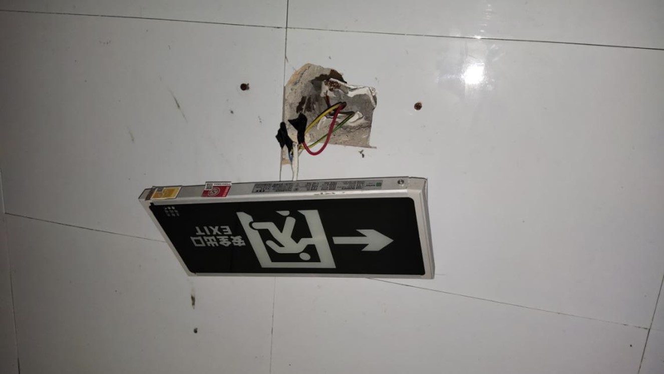 据此前现场查勘,学院11栋寝室有一部分安全指示牌出现了掉落、短路,以及缺损现象,严重影响安全及美观。对此情况,学院给予了高度重视,并着手进行维修。