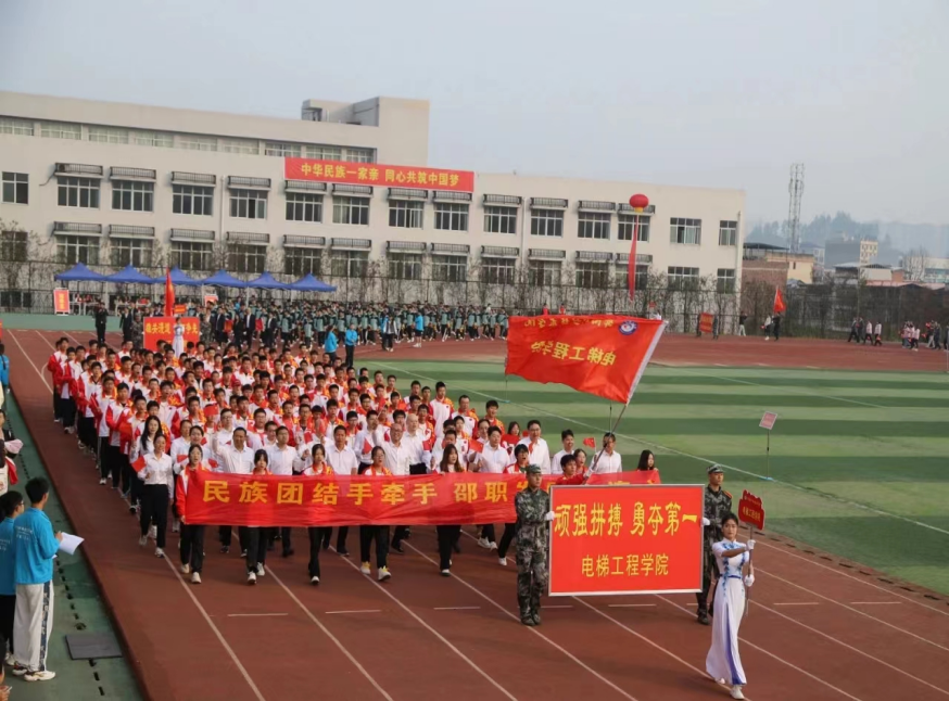 为彰显学校体育精神和团队协作精神,激发同学们参与体育锻炼活动的热情,电梯工程学院于11月3日在田径场参加了学生第十三届、教职工第七届田径运动会暨民族团结运动会开幕式。