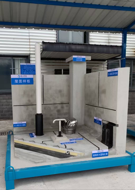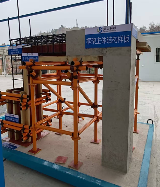 建筑样板模型展示区:含框架主体结构样板、砌体样板(页岩烧结多孔砖)、楼梯样板、屋面样板(有女儿墙)、装饰抹灰样板、双排落地架样板、基础样板。