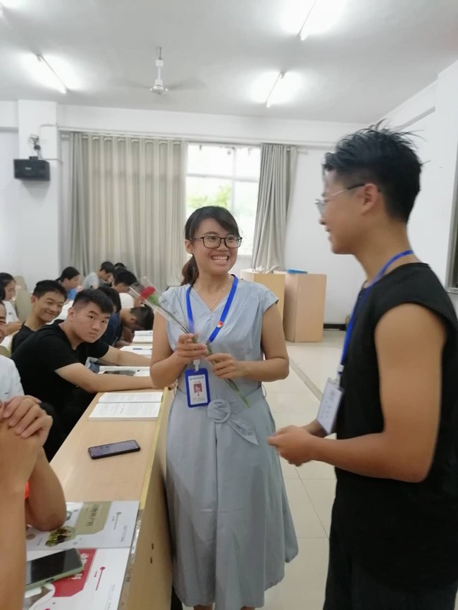9月10日8点10分,同学们早早在教室的黑板上为老师们写下了教师节祝福语“老师,您辛苦了!教师节快乐!”,教室内整整齐齐坐着的同学们,在安静地等待老师的到来,当老师走进教室的那一刻,同学们集体起立高喊:“老师,您辛苦啦!节日快乐!祝您工作顺利、生活幸福!”在第36个教师节到来之际,学院的同学们以不同的方式向老师们表达感激、敬佩之情,为老师们送上真诚的祝福。学生代表来到了行政办公区为老师们献上代表祝福、感恩的鲜花——康乃馨,向老师们恭敬地鞠躬问候,送上祝福,对于这份意外的小礼物,行政岗位上、后勤岗位上、保卫岗位上的老师们纷纷露出惊喜,这些平时不在教学一线的老师们,当接到同学们双手送上的鲜花,露出了幸福的微笑,他们温暖眼神告诉我们,尽管是一支小小的鲜花,他们也很开心、很满足。
