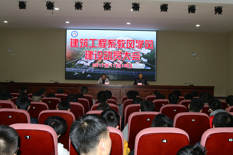 11月16日下午,建筑工程系在图书馆报告厅召开教风学风建设动员大会,全系教职员工及学生共370余人参加了会议。会议由系党总支书记姜东生主持。