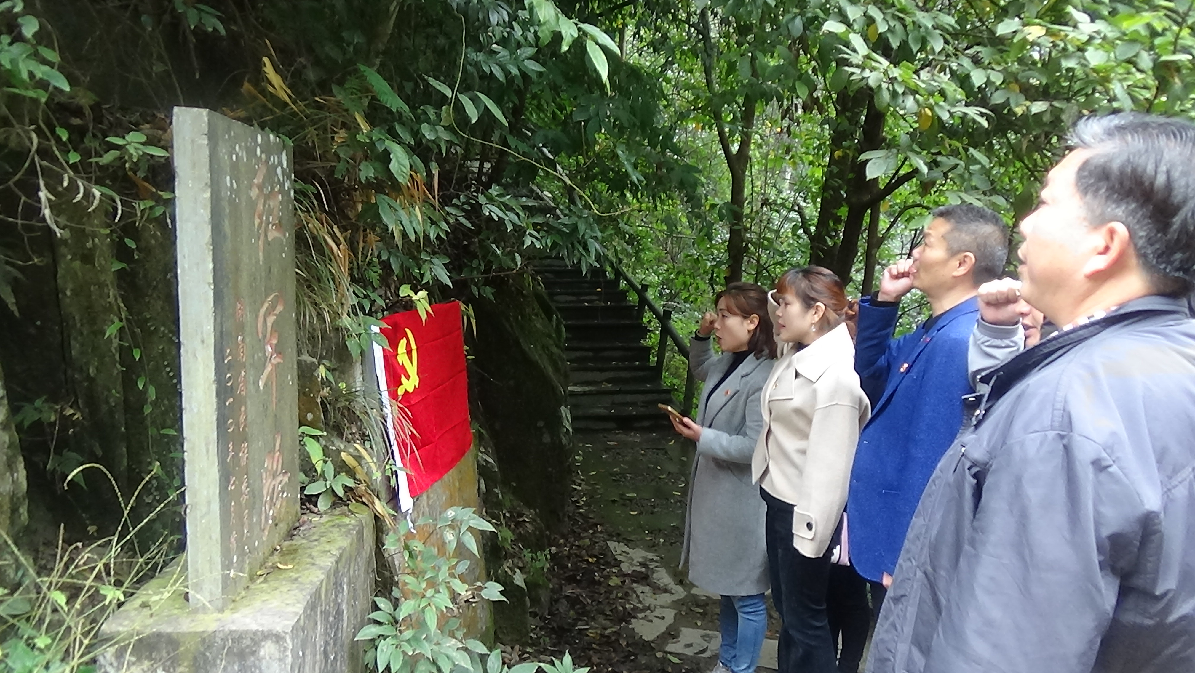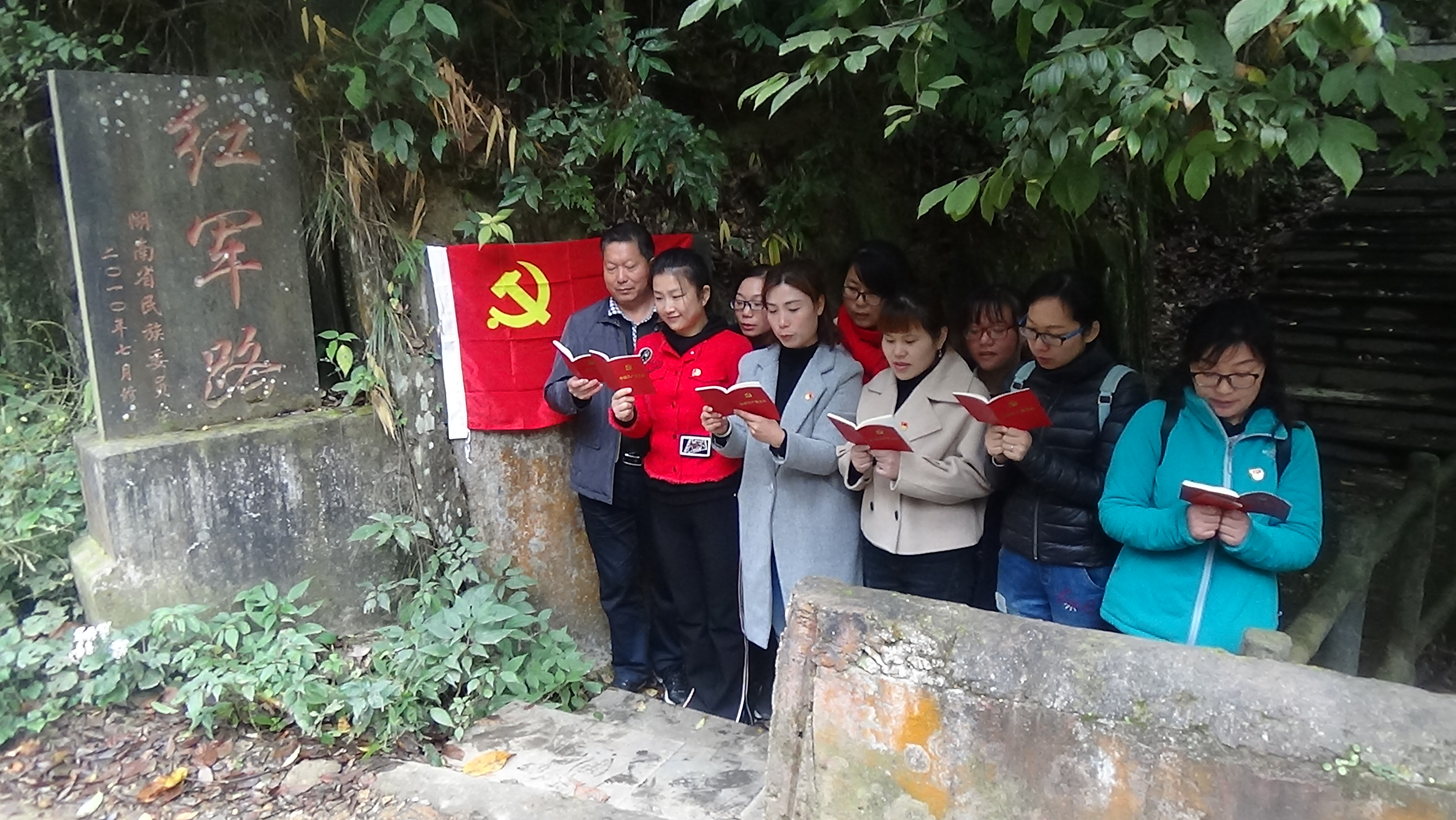 主题党日活动从绥宁黄桑红军路碑处开始,在这里,全体党员缴纳11月份党费,重温了入党誓词,齐诵了《党章》节选内容。
