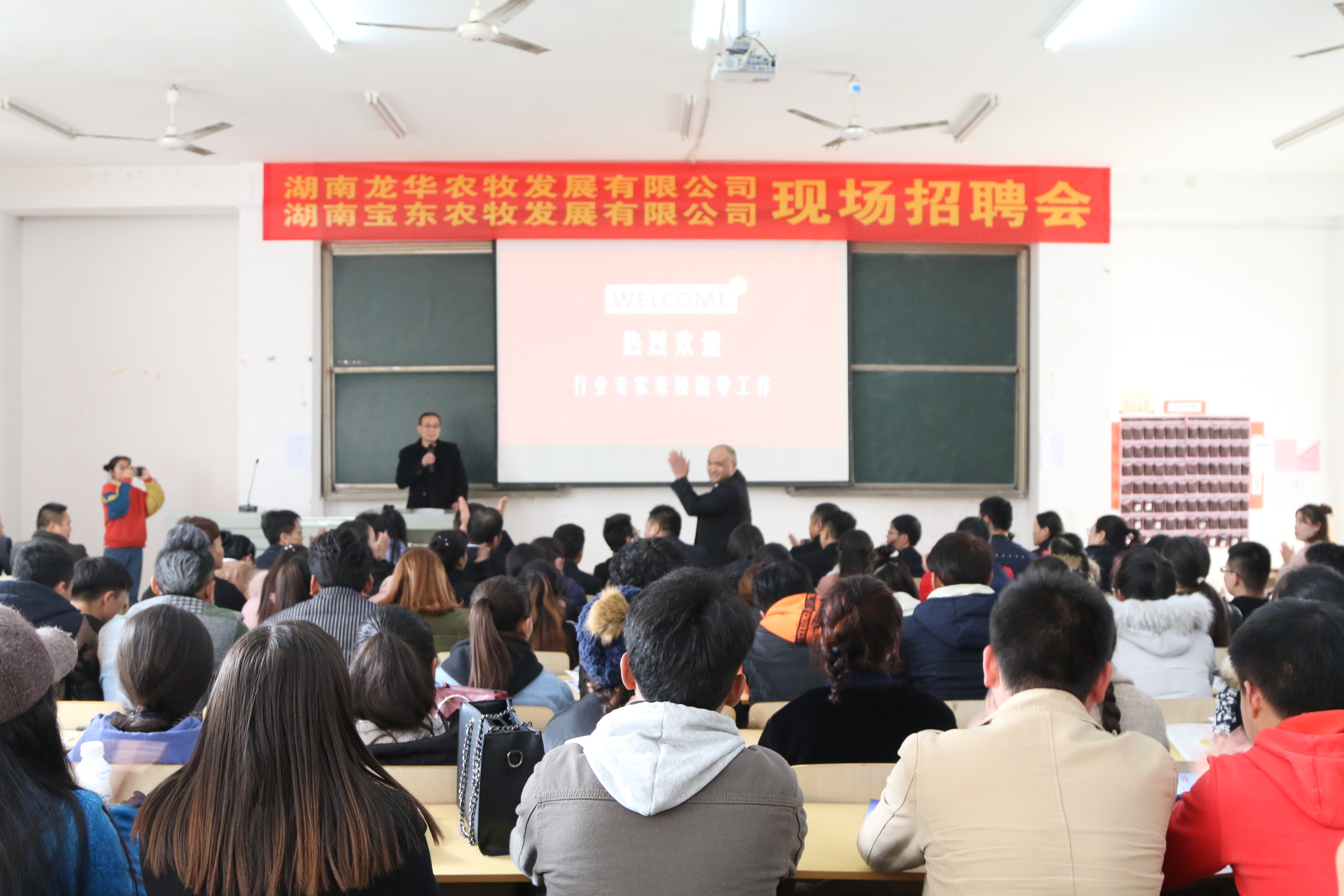 为满足毕业生就业需求,在招生就业处的大力支持下,12月5日下午,生物工程系动物医学专业举办专场招聘会。湖南宝东农牧发展有限公司等8家公司进行了宣讲和招聘,招生就业处处长何轶平、生物工程系党总支书记肖艳群、全体辅导员、动物医学专业全体教师及该专业2018届130余名毕业生参加招聘会。招聘会由系主任谭德展主持。
