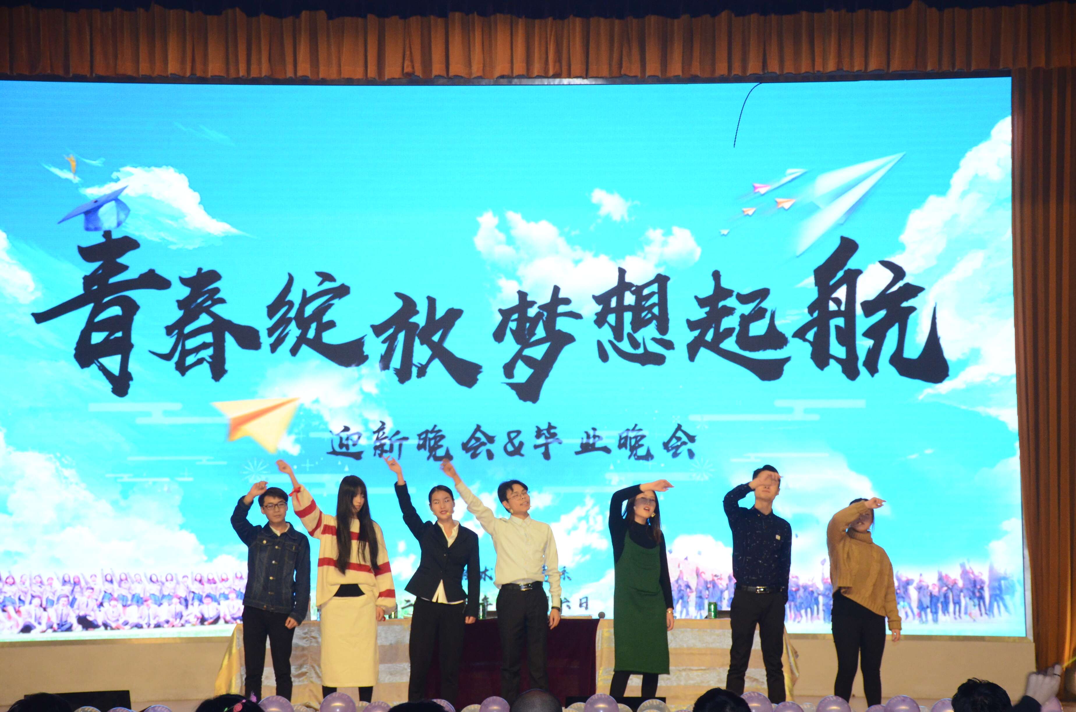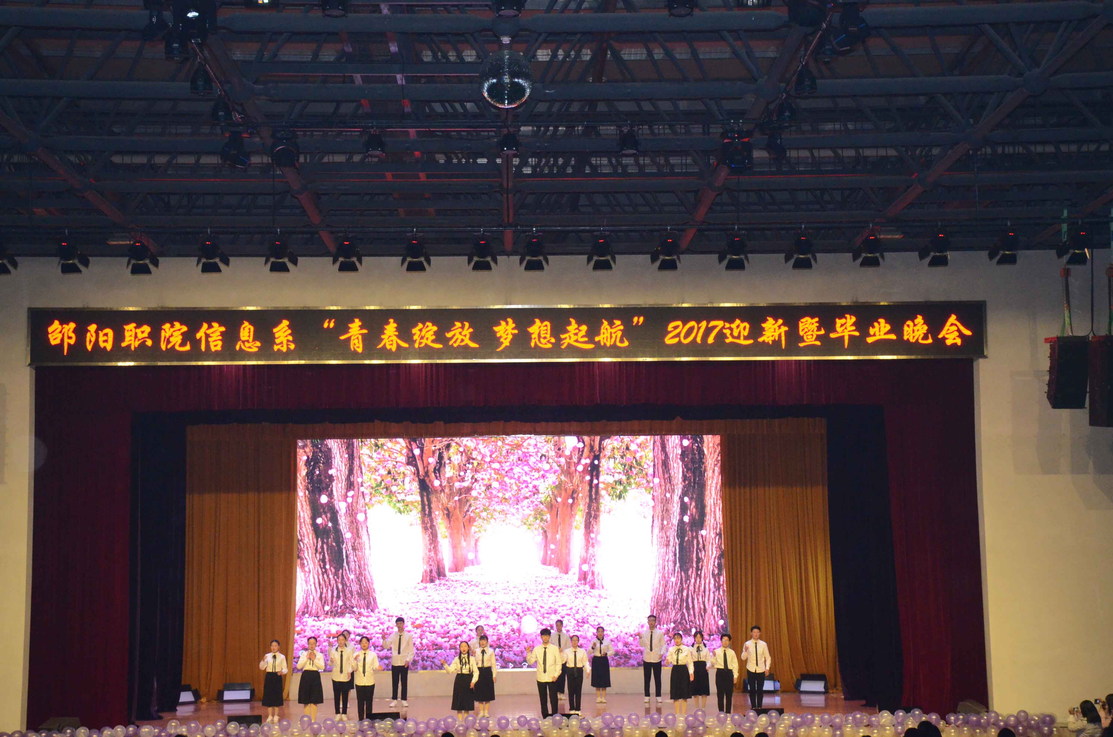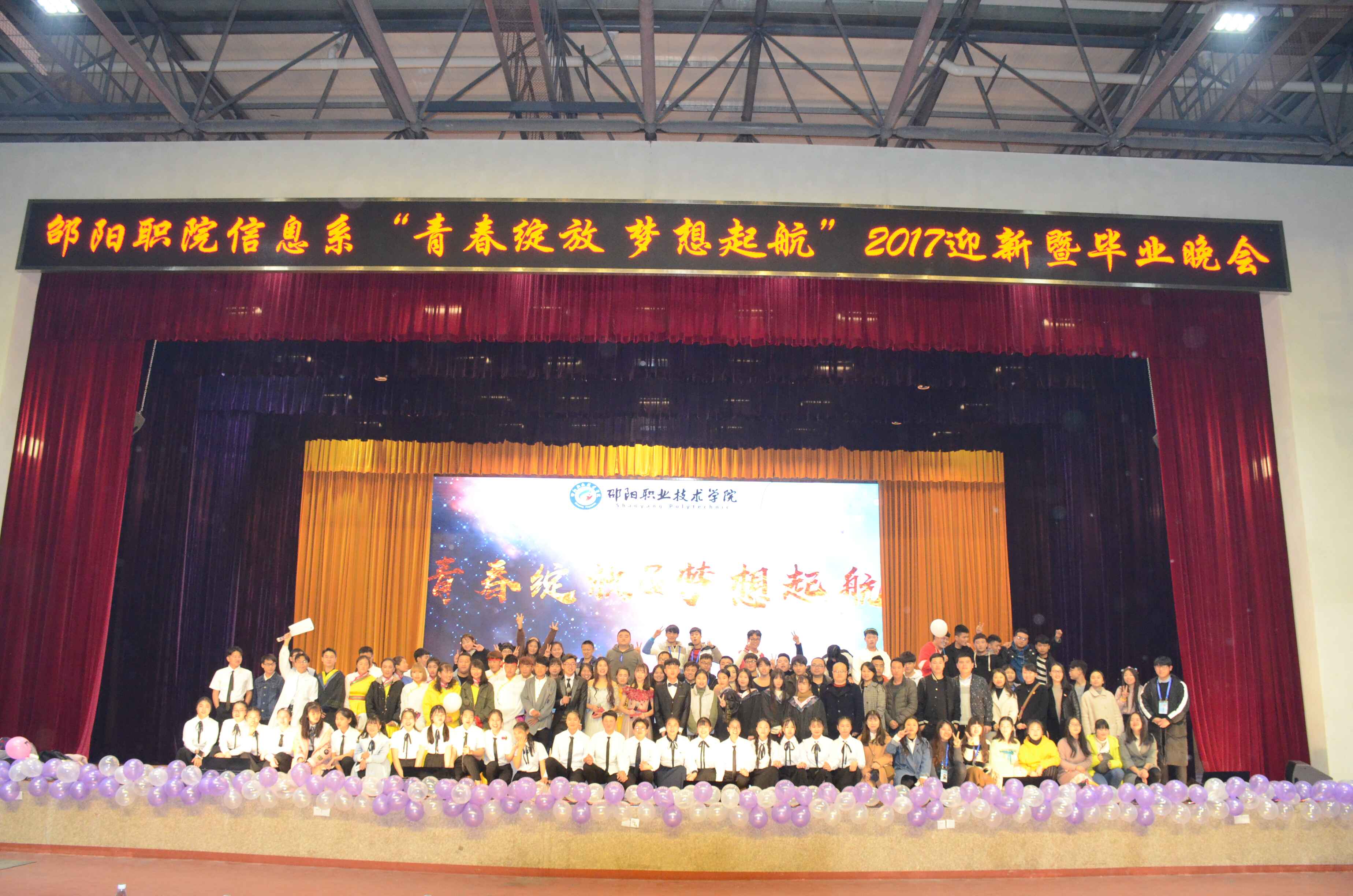 12月6日晚上6点半文体馆华灯璀璨,热闹非凡,信息技术与创意系“青春绽放,梦想起航”迎新暨毕业晚会在此隆重举行。教务处处长王芳,院团委书记肖海丽,建筑工程系党总支书记姜东生、五年制大专部党总支书记刘伟、信息技术与创意系党总支书记唐罡、主任尹茂宝以及信息系全体师生出了本次晚会。