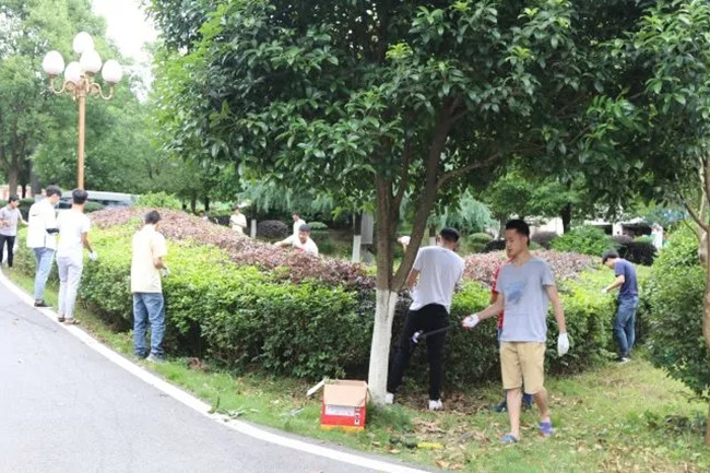 茂密的杂草频频侵扰着美丽的校园,添了乱。
