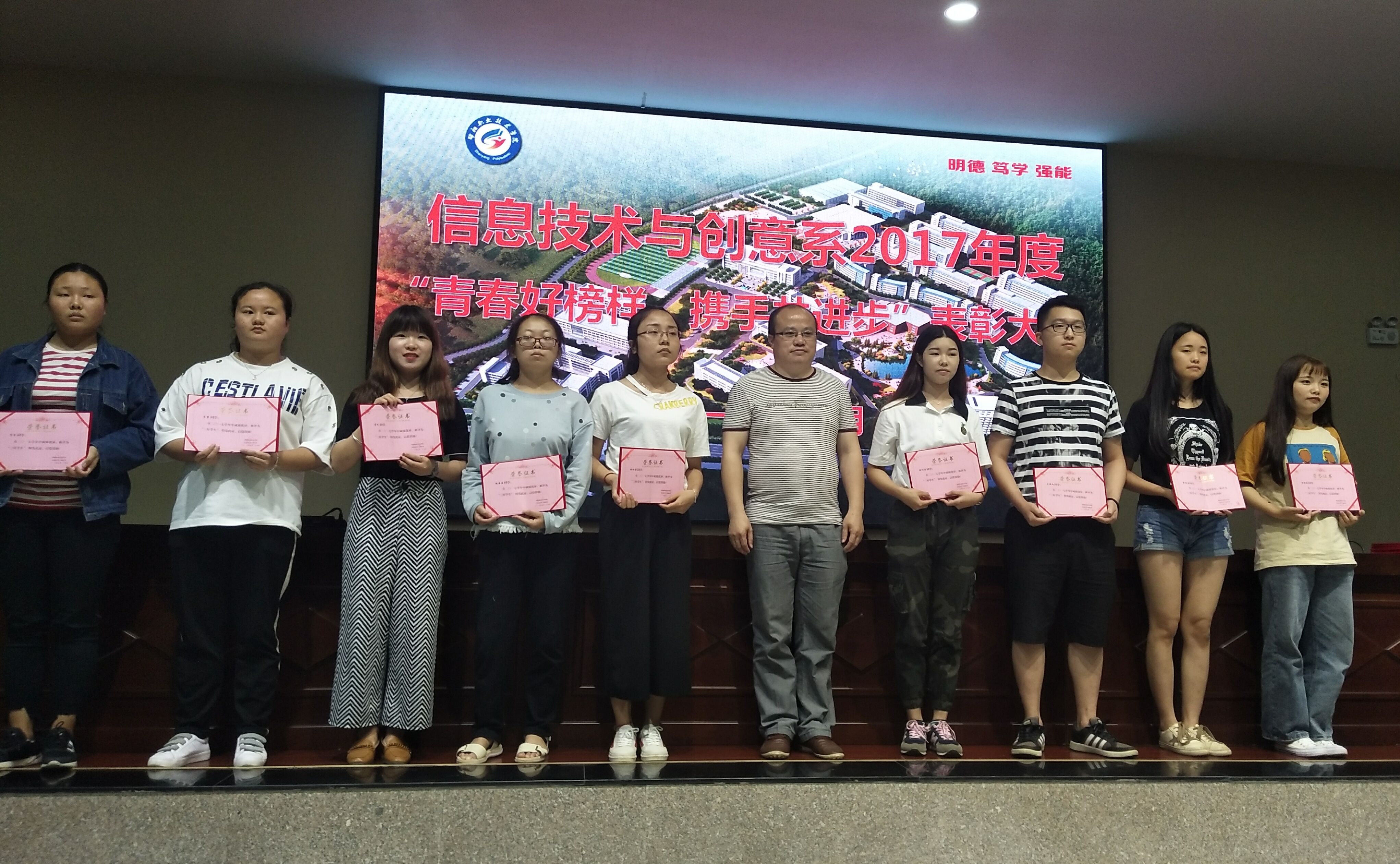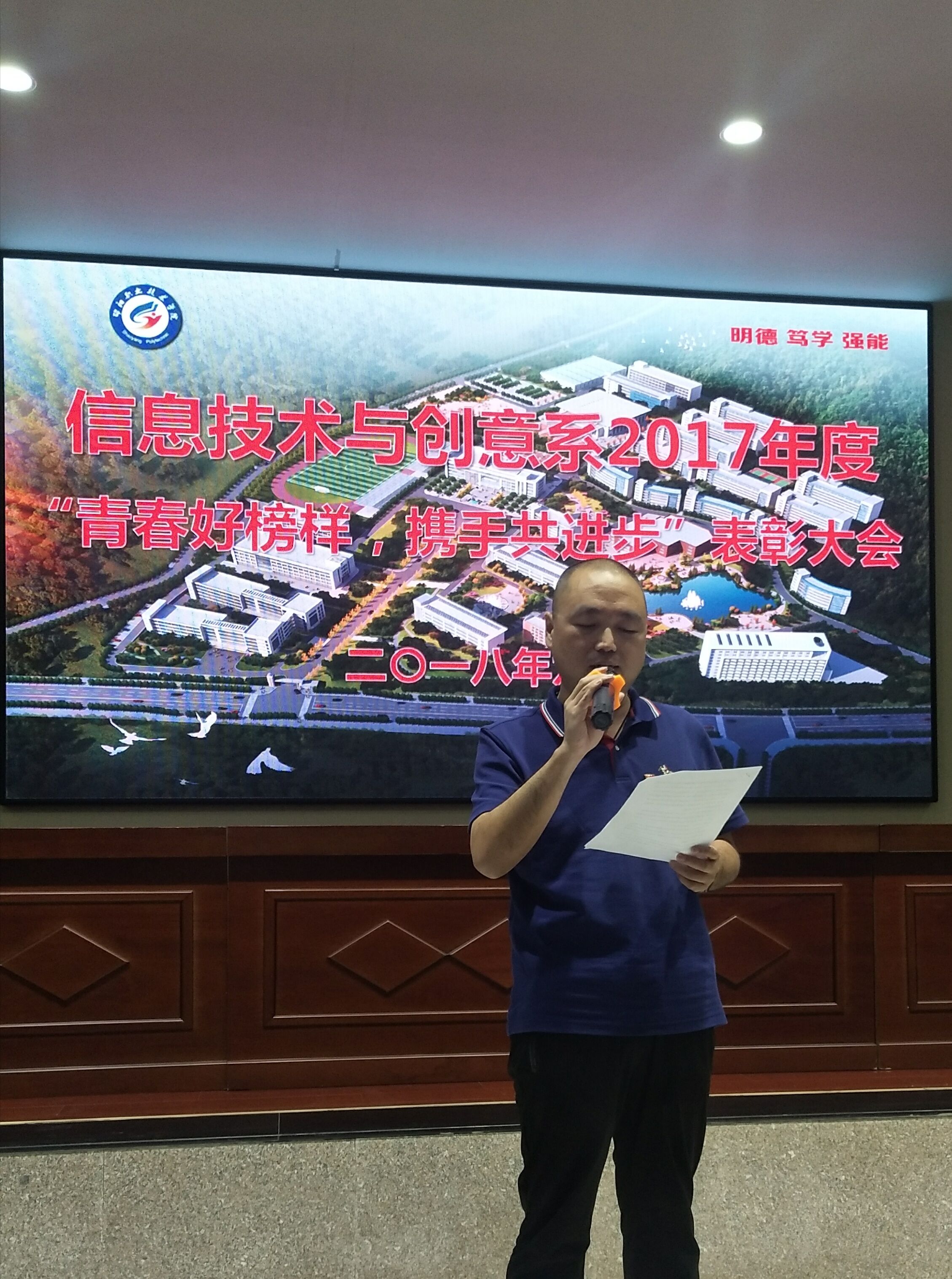 2018年6月12日,信息技术与创意系“青年好榜样 携手共进步”表彰大会在图书馆五楼报告厅举行。