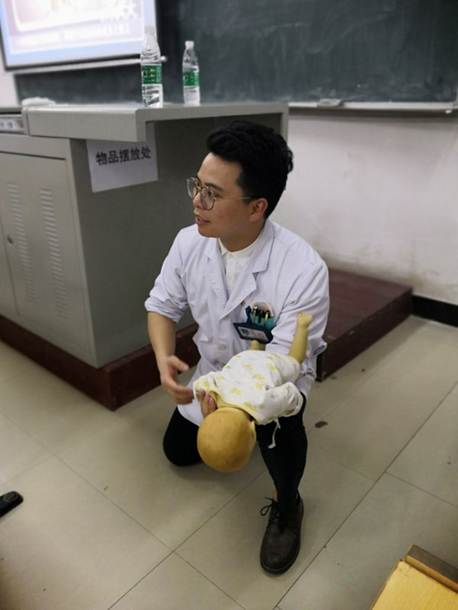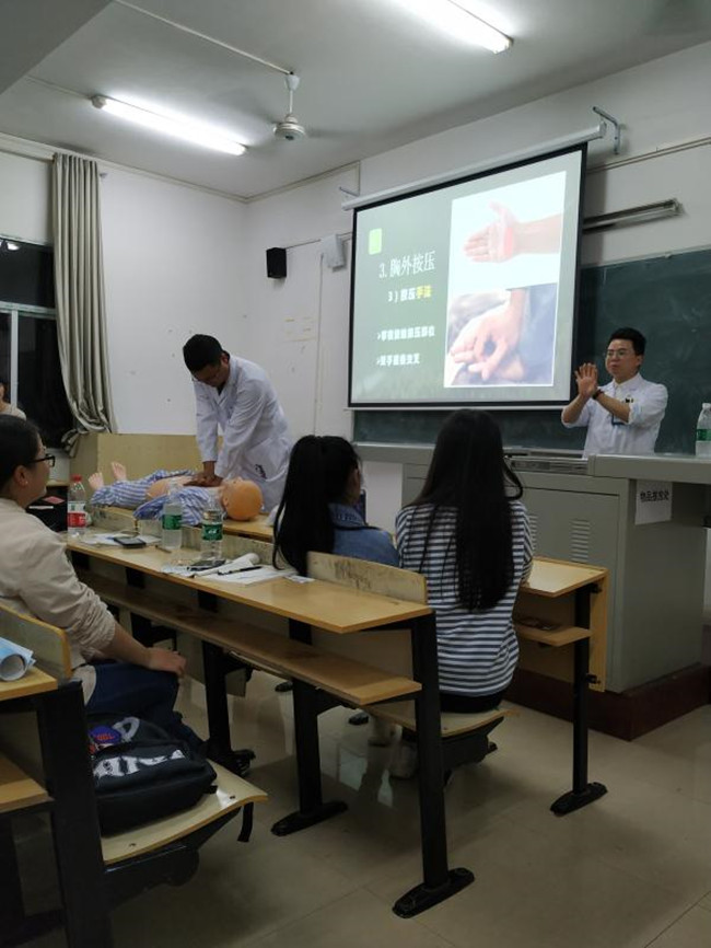培训主要讲授了心肺复苏和海姆立克急救法。培训过程中,中心医院的医生们与同学们进行了互动,耐心细致的为同学们进行讲解,并通过模拟训练让同学们亲自体验如何进行急救。