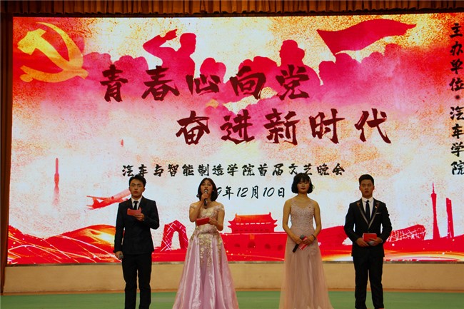 12月10日晚,汽车与智能制造学院“青春心向党,奋进新时代”文艺晚会在学院文体馆成功举办。院党委副书记、院长段雪梅,副院长周平,团委书记肖海丽,汽车学院院长黄新民、书记彭亚红以及千余名学生一同观看了本次晚会。