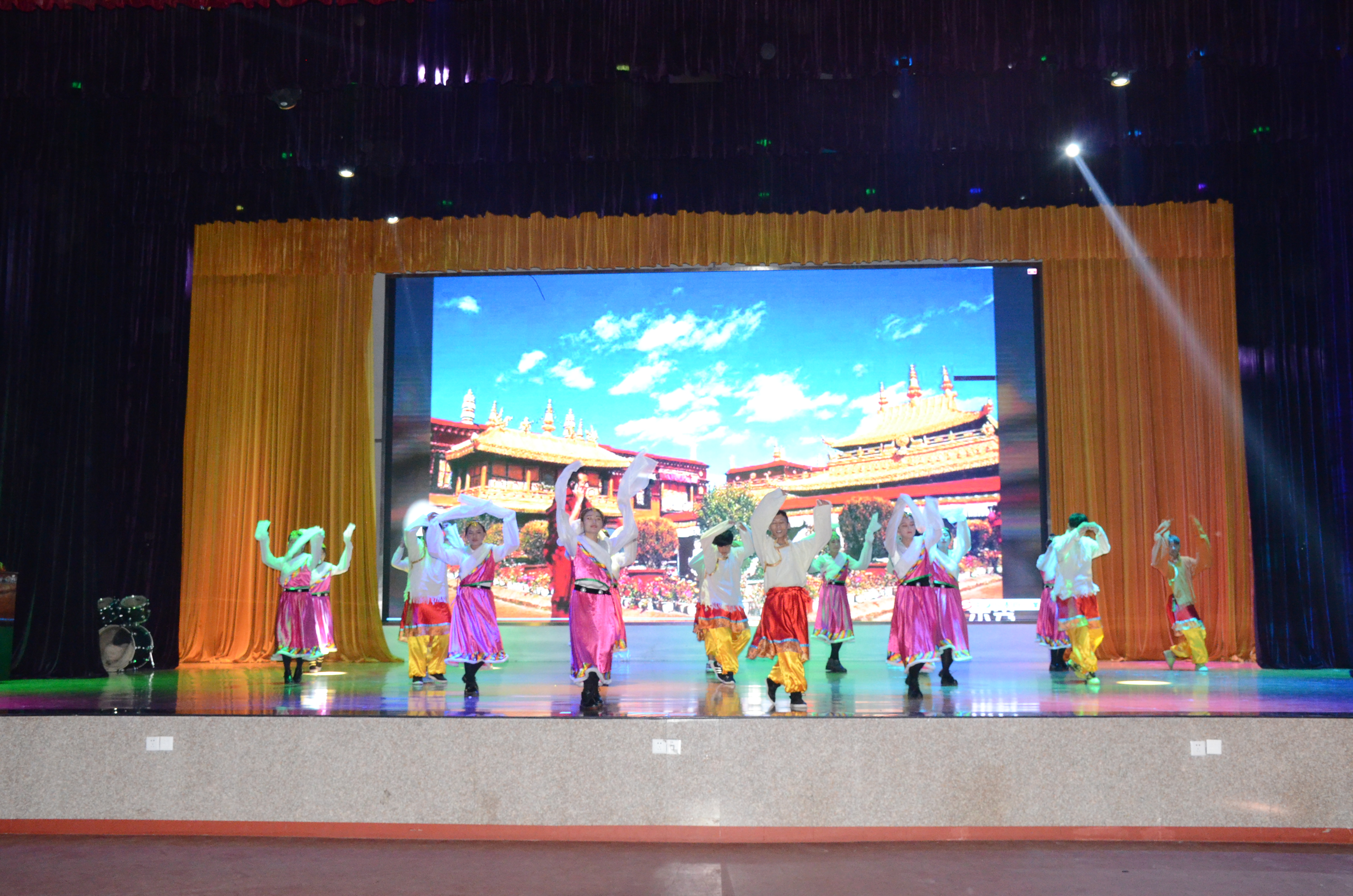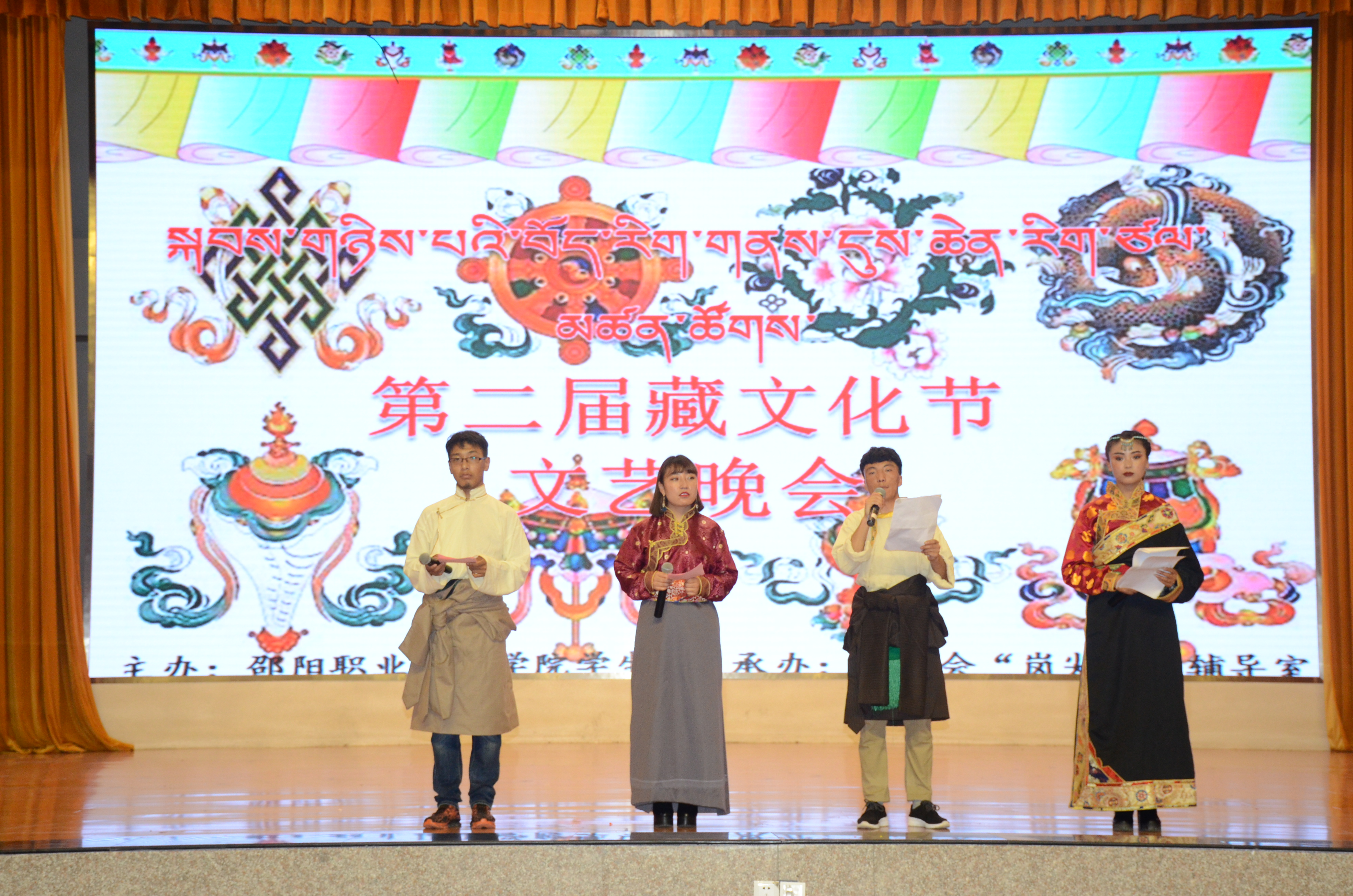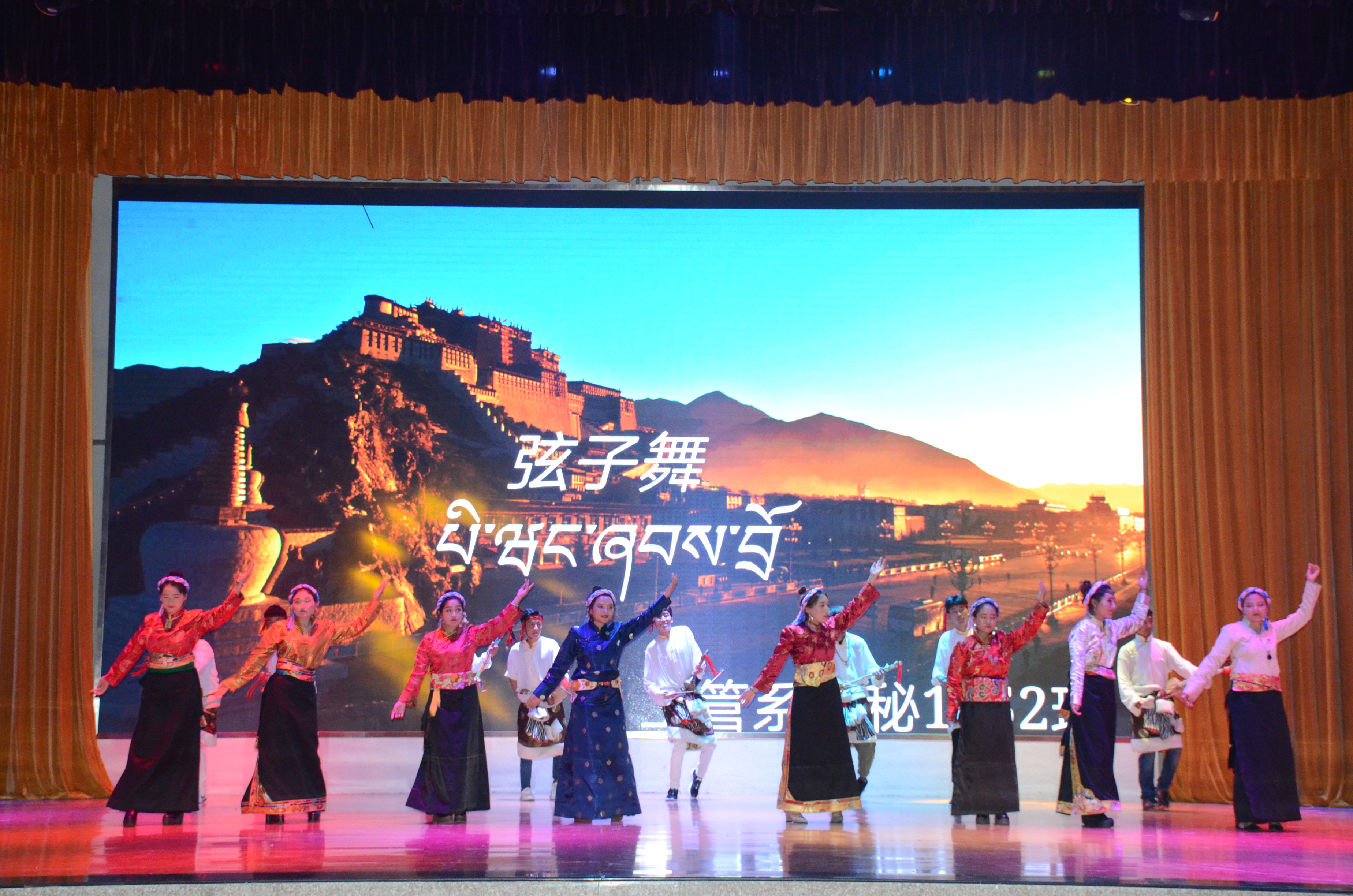 文艺晚会上,全院400多名藏族学生为师生献上了丰富多彩的节目。有不同地域特色的《山南锅庄》、《贡布锅庄》、《弦子锅庄》;有用藏族弹拨乐器“扎念”表演的舞蹈《水纹》,流传在广大农村的歌舞《姜唐果谐》等;有桑布扎乐队演唱的《我们的天路》、小合唱《心之韵》、二重唱《迎酒换歌》、独唱《成都》、《谁的帐篷》及汉族学生友情演出的钢琴弹奏《土耳其进行曲》等节目,表演精彩纷呈,高潮迭起。