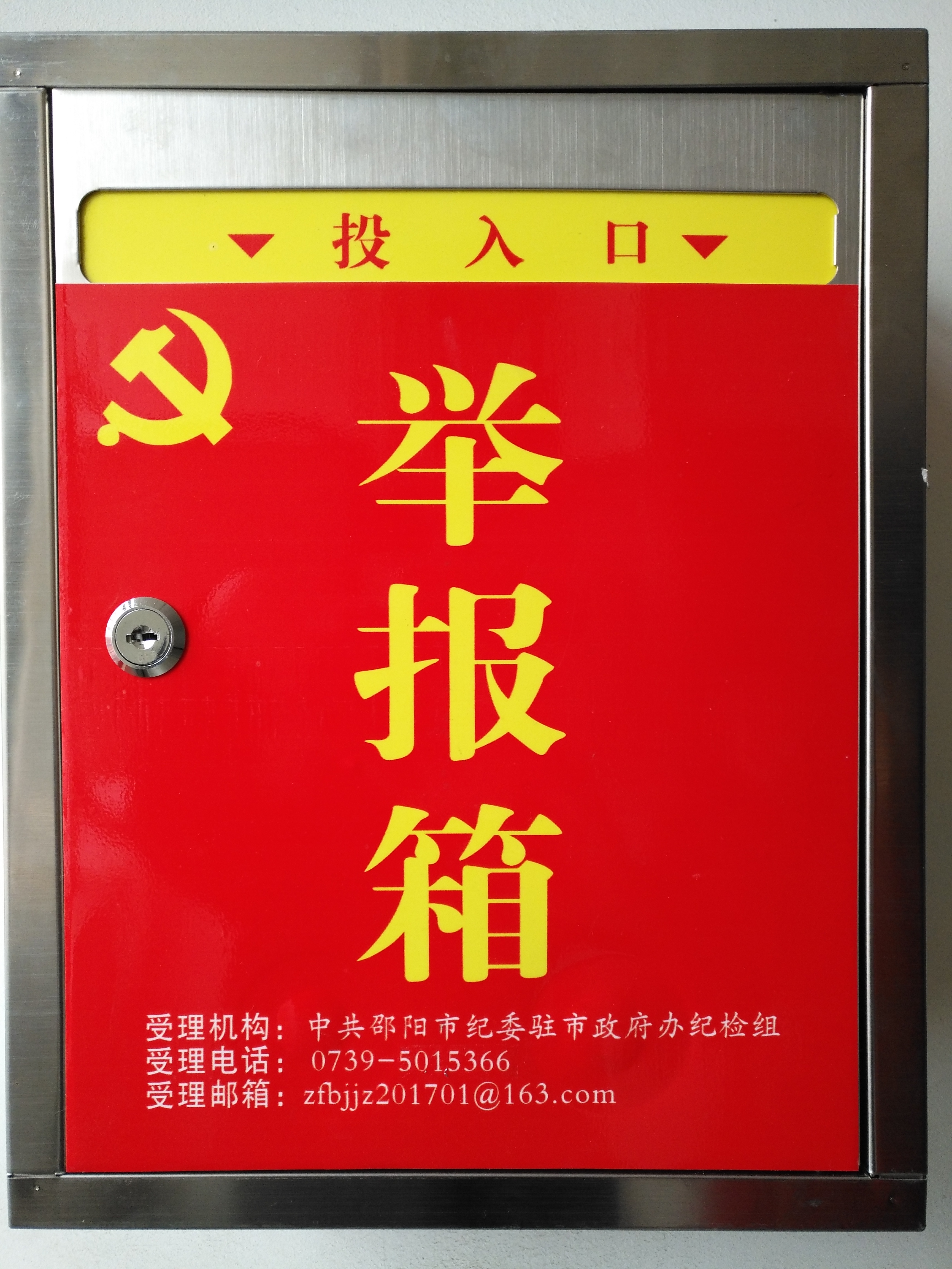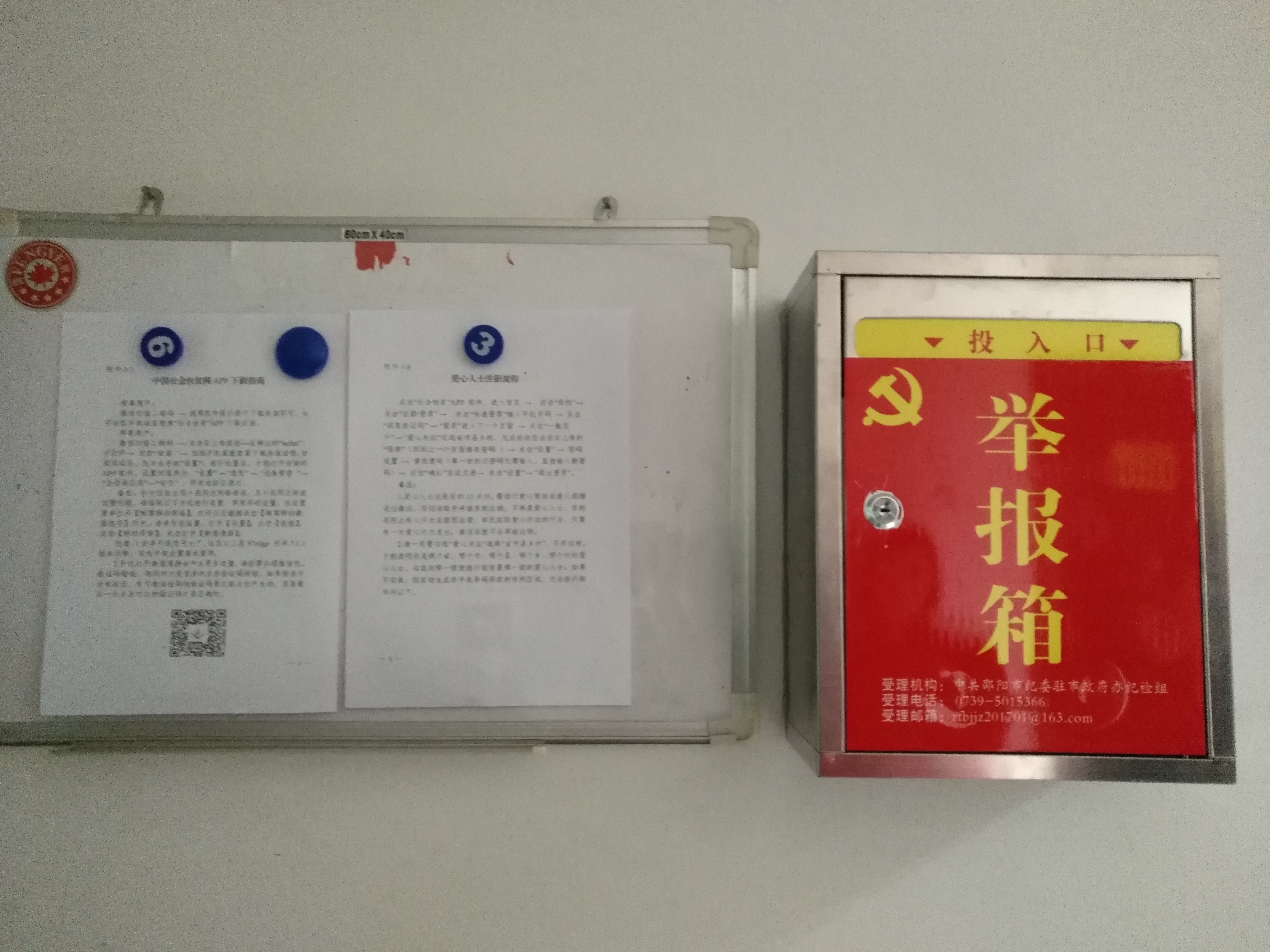 2017年12月22日,市纪委驻市政府办纪检组(以下简称“纪检组”)在其派驻监督的8家单位及其联系的两个扶贫村分别设置了“举报箱”,并公布了举报电话为和电子邮箱,同时,纪检组制订出台了《中共邵阳市纪委驻市政府办公室纪律检查组举报线索受理制度》,至此,纪检组畅通了问题线索举报受理的渠道。