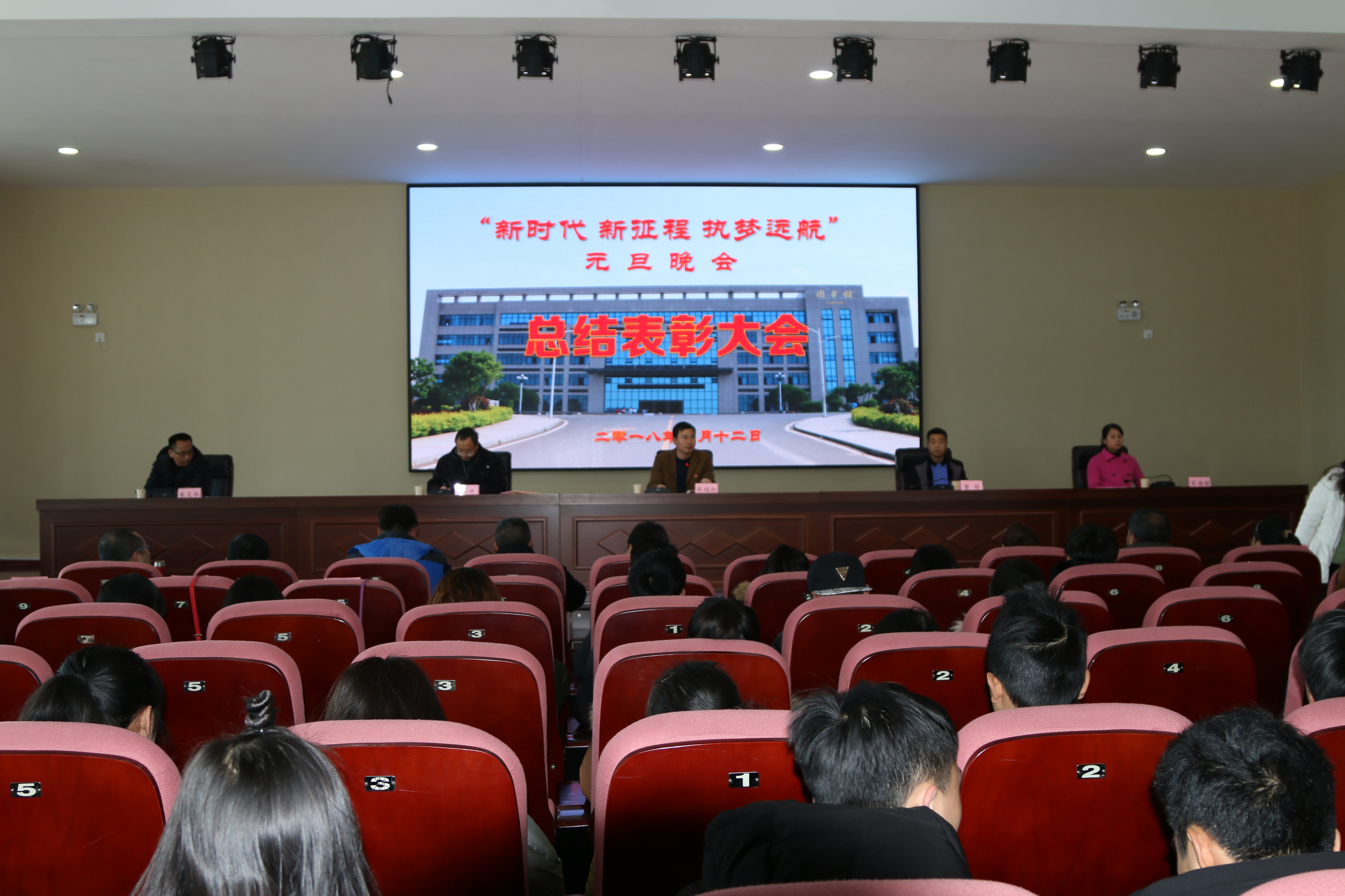 1月12日下午,“新时代 新征程 执梦远航”2018年元旦晚会总结表彰大会在图书馆5楼多功能报告厅隆重举行。大会由党委副书记张远红主持,副院长周平做总结发言并宣读表彰文件。学生处处长朱文华、团委书记肖海丽、工会主席黎林、各系院部党总支书记、团总支书记及晚会所有表演者参加了此次大会。