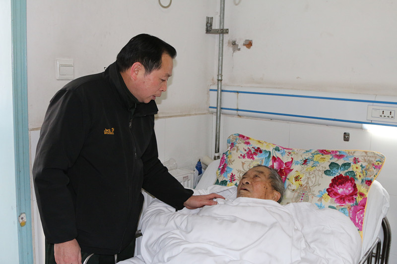 1月30日上午,学院党委书记李小平带领院办公室、离退休工作处有关人员来到了邵阳市第一人民医院普外科32床,看望了离休老党员杨光甫同志。