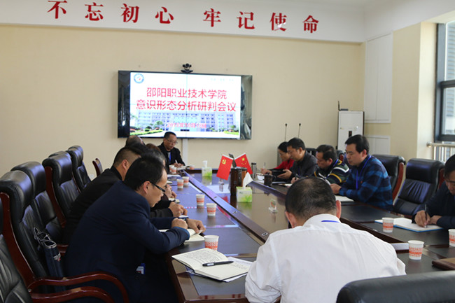 10月18日下午,邵阳职业技术学院意识形态分析研判会议在院图书楼三楼会议室召开,会议由院党委副书记张远红主持会议,院党委书记李小平,党委委员、宣传统战部部长曾云、各党总支书记及相关部门负责人参加会议。