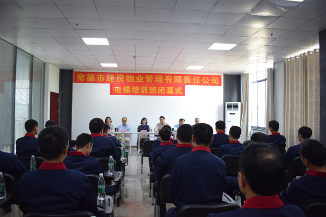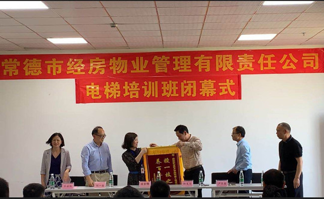 2019年4月25日下午,常德市经房物业管理有限责任公司员工电梯培训班闭幕式在邵阳职业技术学院电梯工程学院成功举行。出席本次仪式的嘉宾有邵阳职业技术学院院长段雪梅、副院长刘一兵、电梯学院执行院长王永红以及常德城投集团领导孙有力和常德经房物业公司董事长尹长春等。