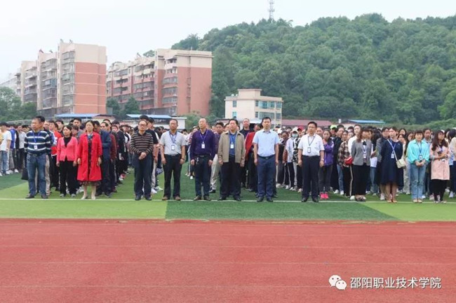 5月下旬伊始,邵阳职业技术学院“一月一升旗”主题活动在学院田径运动场隆重举行。鲜艳的五星红旗,伴随着嘹亮的《义勇军进行曲》冉冉升起,全院8千多名师生员工凝望着国旗,满怀深情同唱《国歌》。