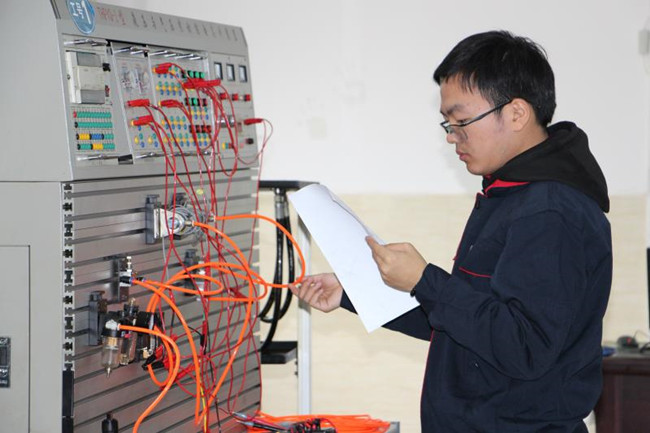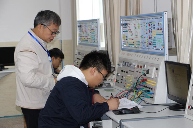 在另一块场地内,机电一体化技术专业技能抽查也在紧张进行,3个专业基本技能模块和4个岗位核心技能模块组成抽查项目。相对于汽车维修实操的大开大合,机电一体化抽查的现场安静而有序,电气回路安装与调试、电气回路故障检测与维修、液压系统装调等抽查项目,让学生更专注于每一组数据和每一条线路,监督的专家组成员也在一旁仔细观看和记录学生的操作步骤。