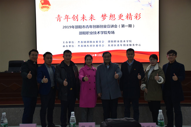 2019年12月24日下午寒风瑟瑟,邵阳职业技术学院图书馆五楼报告厅的老师和同学们却热血沸腾,这里正在进行的是由共青团邵阳市委和邵阳职业技术学院共同主办、团大祥区委和大祥区青年创业服务中心承办的“青春创未来 梦想更精彩”2019年邵阳市青年创新创业宣讲会邵阳职业技术学院专场活动。