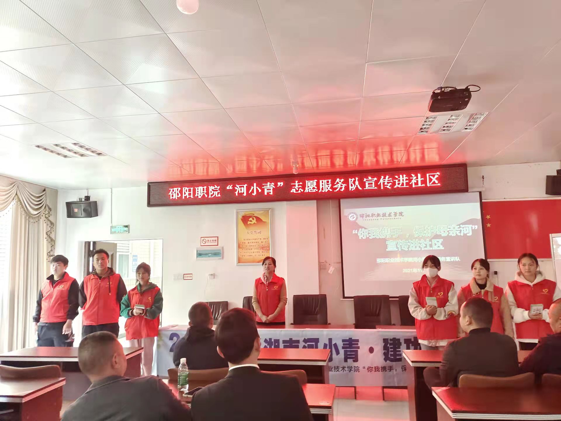 9月28日、11月9日,邵阳职业技术学院“河小青”志愿服务队分别深入中心路社区和桂花社区开展“河小青”宣讲进社区活动,给村民发放“河小青”宣传手册,讲解生态环保理念,宣讲“绿水青山就是金山银山”思想,组织村民观看《长江保护法》、《湖南省河道采砂管理条例》等宣传微视频,将宣讲寓教于乐,打造欢乐风趣的氛围,将关于环境保护的抽象知识具体到实际生活中,将保护资江的思想种子根植于居民心中,静待其萌发出新芽。